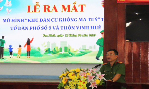 Thực hiện Kế hoạch số 597/KH-UBND ngày 05/9/2025 của UBND xã Vạn Ninh về việc triển khai xây dựng mô hình “Khu dân cư không ma túy” tại Tổ dân phố số 9 và thôn Vinh Huề xã Vạn Ninh và Kế hoạch số 634/KH-UBND ngày 09/9/2025 của UBND xã Vạn Ninh về việc tổ chức lễ ra mắt mô hình “Khu dân cu không ma túy”, sáng ngày 12/9/2025, Công an xã Vạn Ninh tham mưu UBND xã tổ chức Lễ ra mắt mô hình “Khu dân cư không ma túy” tại Tổ dân phố số 9 và thôn Vinh Huề.