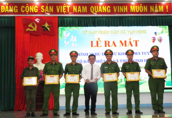 Tại buổi Lễ ra mắt mô hình, Chủ tịch UBND xã đã trao tặng Giấy khen cho 01 tập thể Công an xã Vạn Ninh, 04 cán bộ và 01 đồng chí lực lượng an ninh trật tự ở cơ sở có thành tích xuất sắc trong công tác đấu tranh, phòng, chống ma túy trên địa bàn xã Vạn Ninh.
