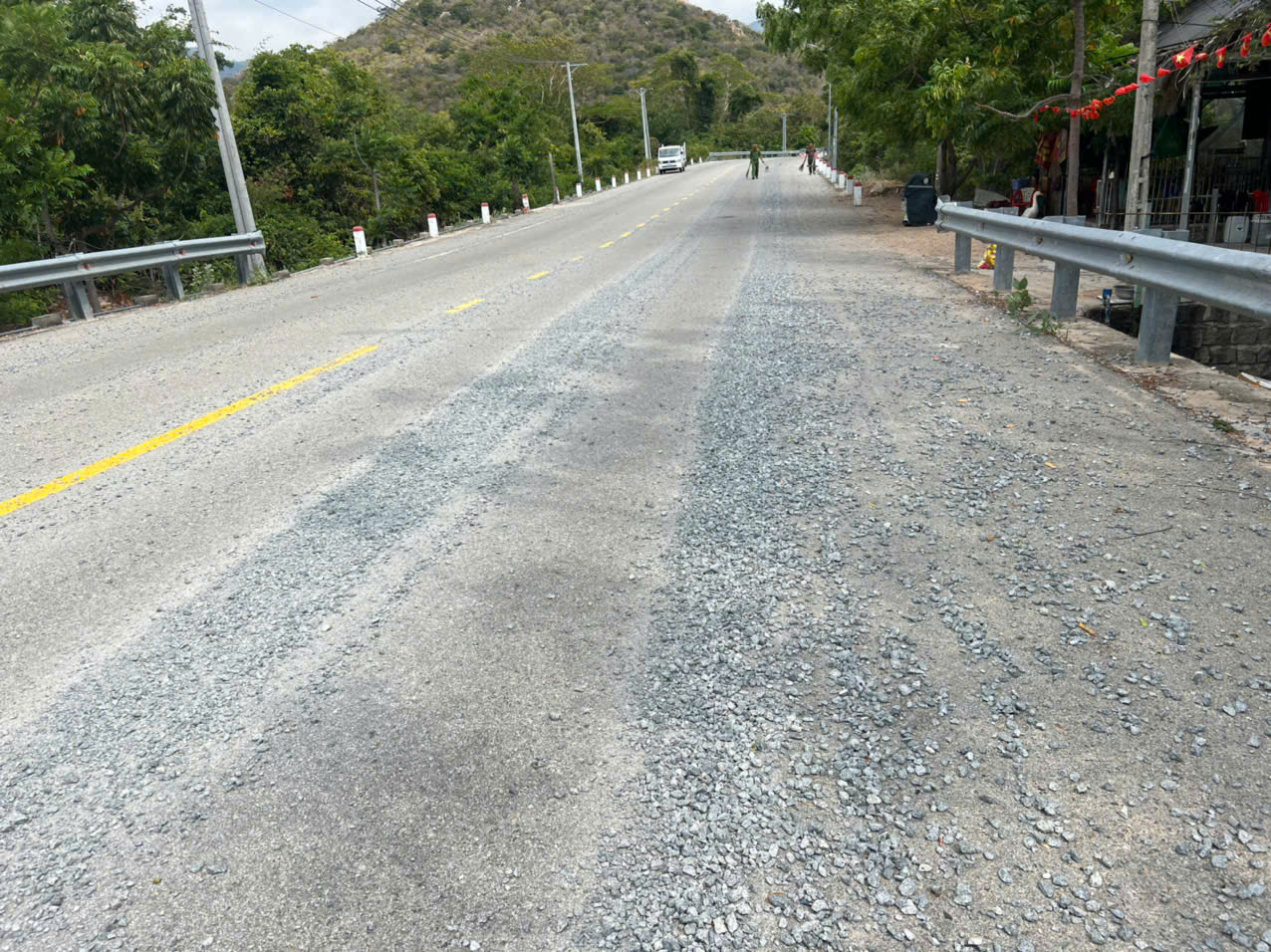 Sáng ngày 12/4/2026, tại tuyến đường Trường Sa, đoạn qua thôn Thái An, xã Vĩnh Hải, tỉnh Khánh Hòa, xảy ra tình trạng một xe vận chuyển vật liệu xây dựng (đá dăm) làm rơi vãi ra mặt đường với chiều dài hơn 100 mét. Lượng đá dăm nhỏ, sắc cạnh phủ kín mặt đường tiềm ẩn nguy cơ rất lớn gây mất an toàn giao thông, đặc biệt đối với người điều khiển xe mô tô, xe máy khi lưu thông qua khu vực này, nhất là vào thời điểm buổi sáng khi lưu lượng phương tiện tăng cao.