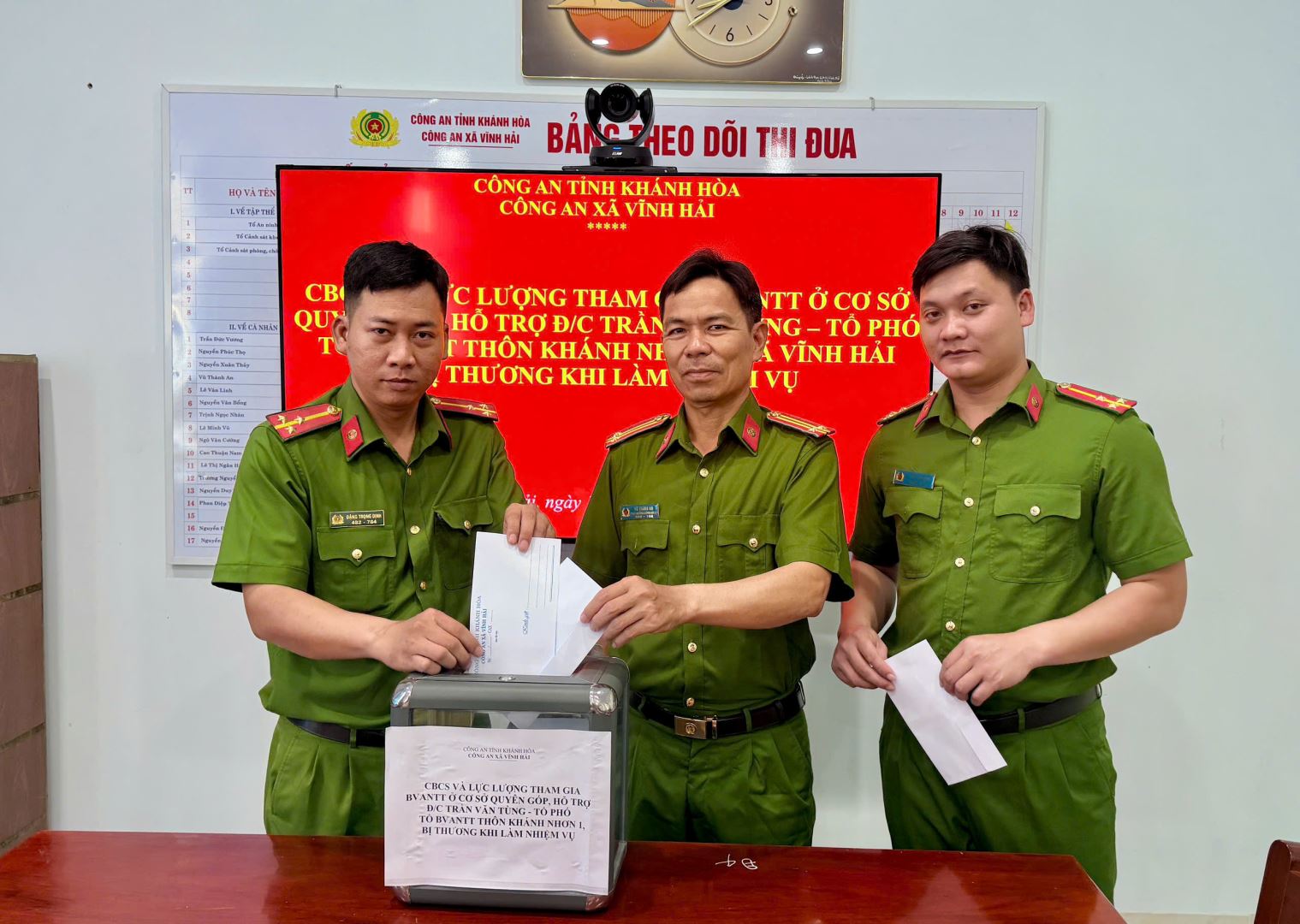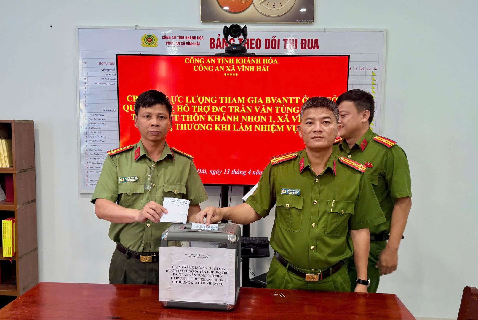 Tập thể Chỉ huy và Cán bộ chiến sĩ Công an xã Vĩnh Hải quyên góp, hổ trợ đồng chí Trần Văn Tùng