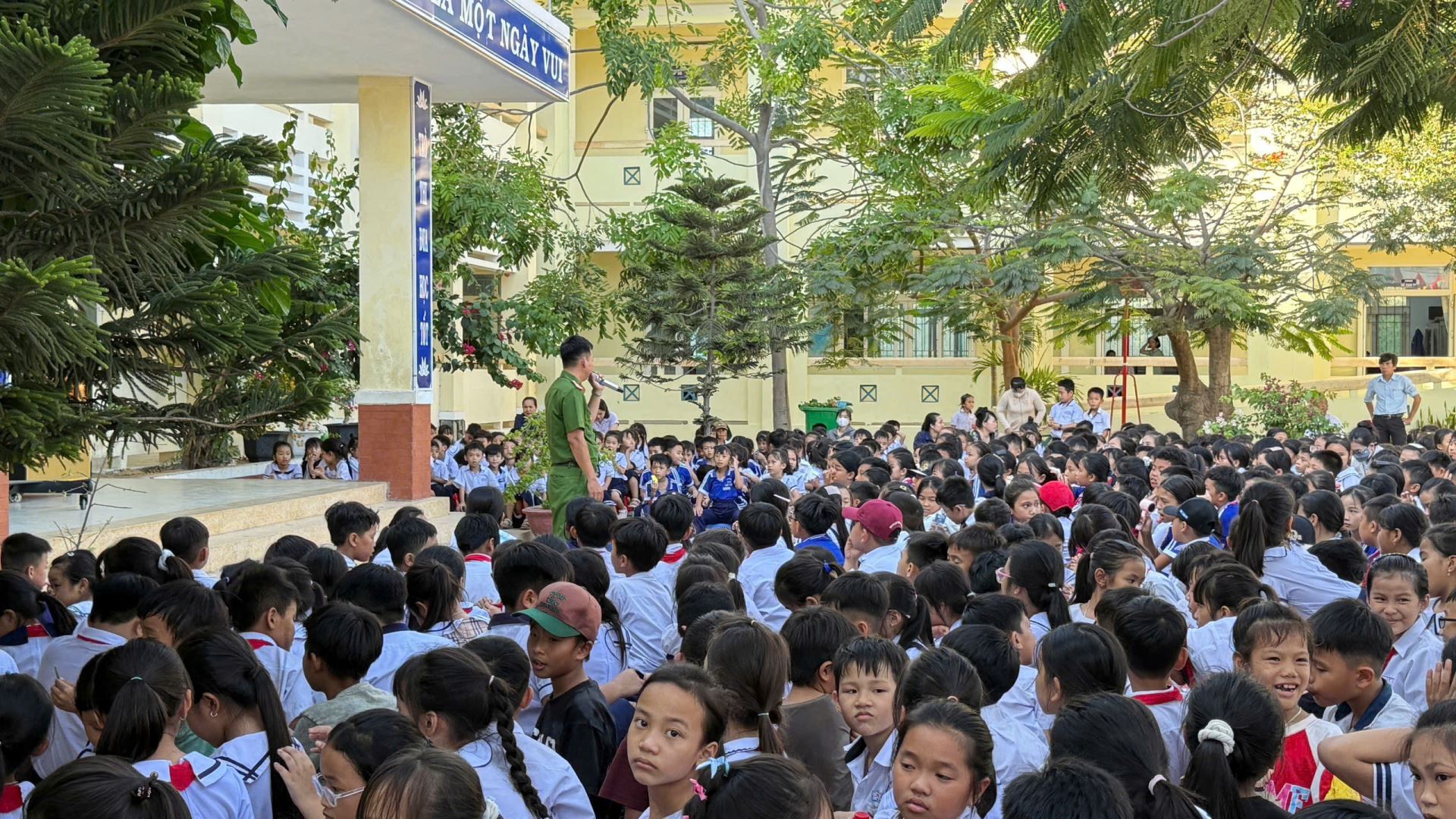 Nhằm nâng cao nhận thức, ý thức chấp hành pháp luật và trang bị kỹ năng cần thiết cho cán bộ, giáo viên và các em học sinh, sáng ngày 17/4/2026, Công an xã Vĩnh Hải đã phối hợp với Trường Tiểu học Mỹ Tân tổ chức buổi tuyên truyền về Luật An toàn giao thông (ATGT), phòng cháy chữa cháy (PCCC) và cứu nạn cứu hộ (CNCH).