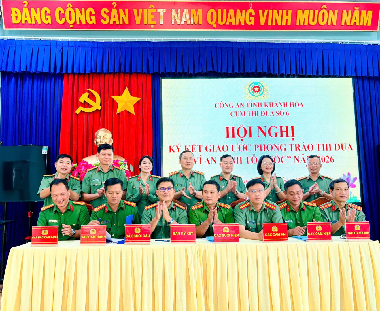 Cụm thi đua số 6 gồm 7 đơn vị Công an cấp xã gồm: Công an xã Suối Hiệp, Công an xã Suối Dầu, Công an xã Cam Hiệp, Công an xã Cam An, Công an phường Cam Ranh, Công an phường Bắc Cam Ranh và Công an phường Cam Linh. Với khẩu hiệu thi đua "Theo lời Bác dạy - Đổi mới tư duy, Nâng cao tri thức - Chính quy, tinh nhuệ, hiện đại - Vì Đảng, vì dân", các đơn vị trong cụm đã thông qua dự thảo Quy chế hoạt động, tiêu chí và thang điểm thi đua, nội dung ký kết giao ước thi đua, khung tiêu chí chấm điểm, xếp loại thi đua năm 2026. Đồng thời cùng nhau trao đổi, thảo luận, thống nhất một số giải pháp nhằm hoàn thành các chỉ tiêu thi đua đã đề ra trong năm 2026.