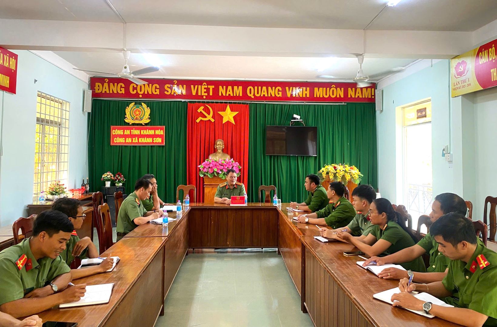 Đại tá Nguyễn Mậu An, Phó Giám đốc Công an tỉnh làm việc với Công an xã Khánh Sơn