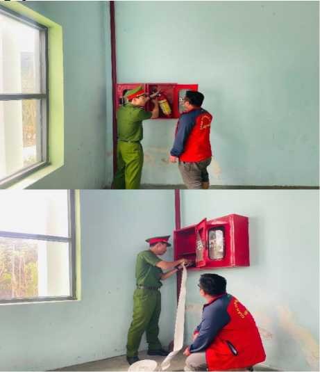 Cán bộ Đội chữa cháy và cứu nạn, cứu hộ khu vực 9 kiểm tra, hướng dẫn công tác PCCC và CNCH tại các điêm bầu cử trên địa bàn