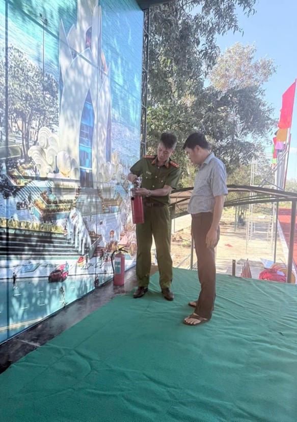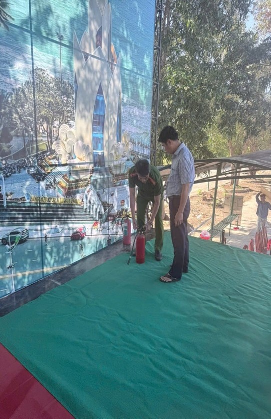 Phòng Cảnh sát PCCC và CNCH tiến hành kiểm tra khu vực sân khấu tổ chức Lễ giao nhận quân năm 2026