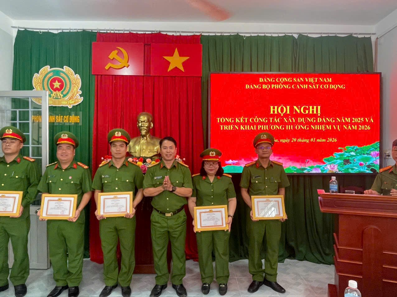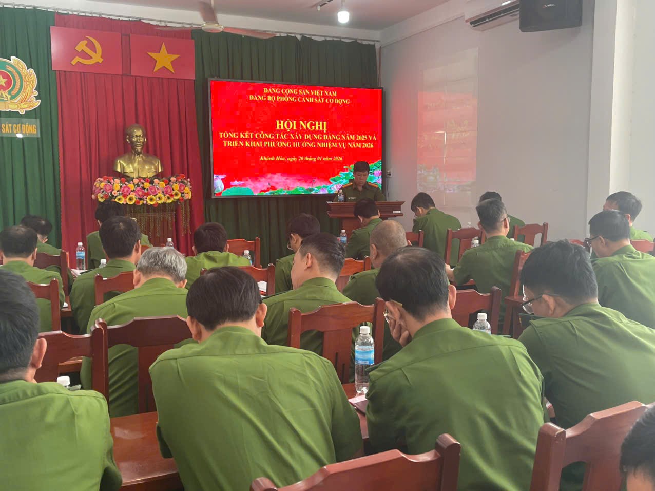 Sáng ngày 20/01/2026, Đảng ủy Phòng Cảnh sát cơ động, Công an tỉnh Khánh Hòa tổ chức Hội nghị tổng kết công tác xây dựng Đảng năm 2025 và triển khai nhiệm vụ năm 2026. Tham dự Hội nghị có đồng chí Thượng tá Lê Văn Lâm, Phó Bí thư Đảng ủy, chủ trì hội nghị và tập thể cấp ủy, lãnh đạo, cán bộ, chiến sĩ Phòng Cảnh sát cơ động.