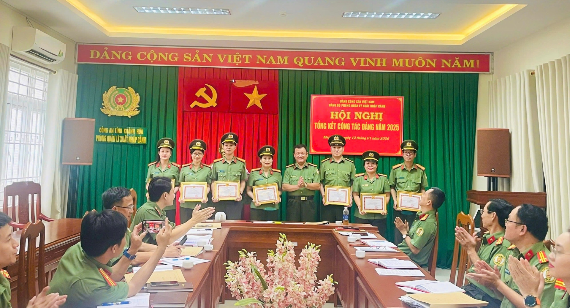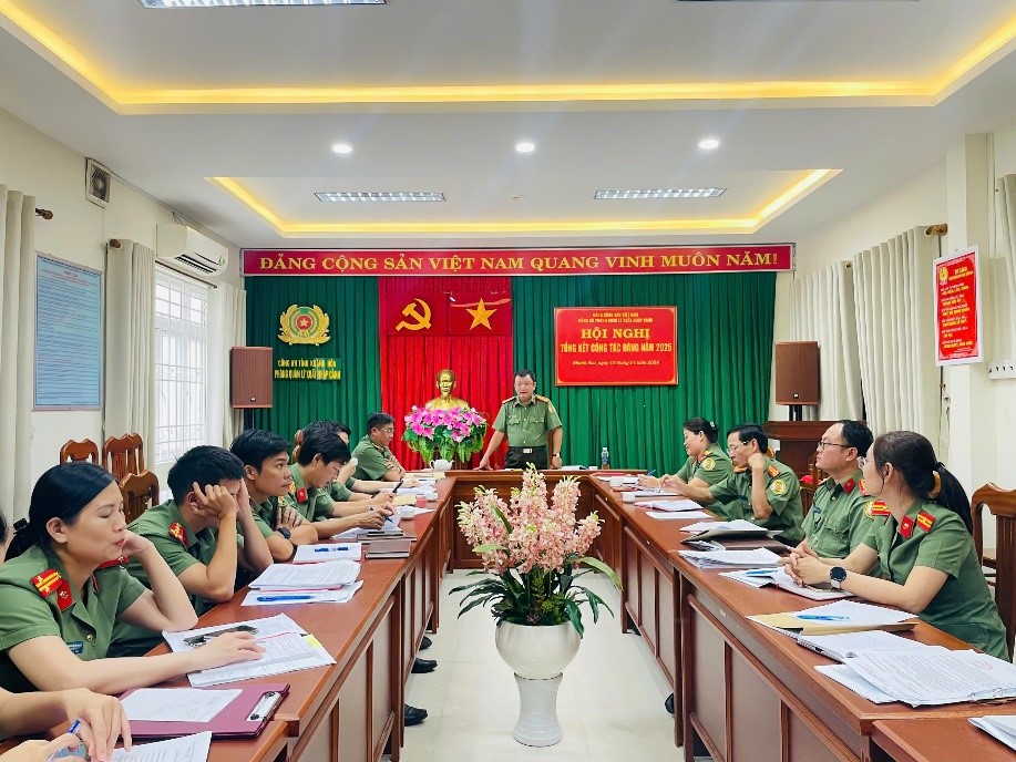 Ngày 12/01/2026, Phòng Quản lý xuất nhập cảnh tổ chức Hội nghị tổng kết công tác Đảng năm 2025 và triển khai nhiệm vụ năm 2026. Tham dự Hội nghị có đồng chí Thượng tá Lê Thanh Hòa – Phó Thủ trưởng Cơ quan Ủy ban kiểm tra Đảng ủy Công an tỉnh; đồng chí Thượng tá Tô Bích Ngọc – Bí thư Đảng ủy Phòng Quản lý xuất nhập cảnh chỉ đạo Hội nghị.