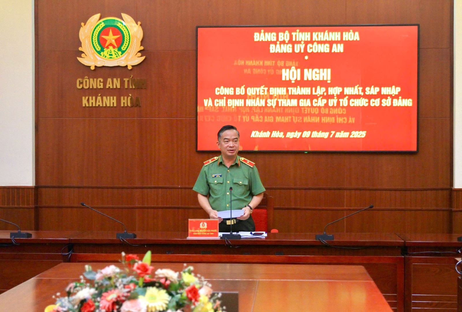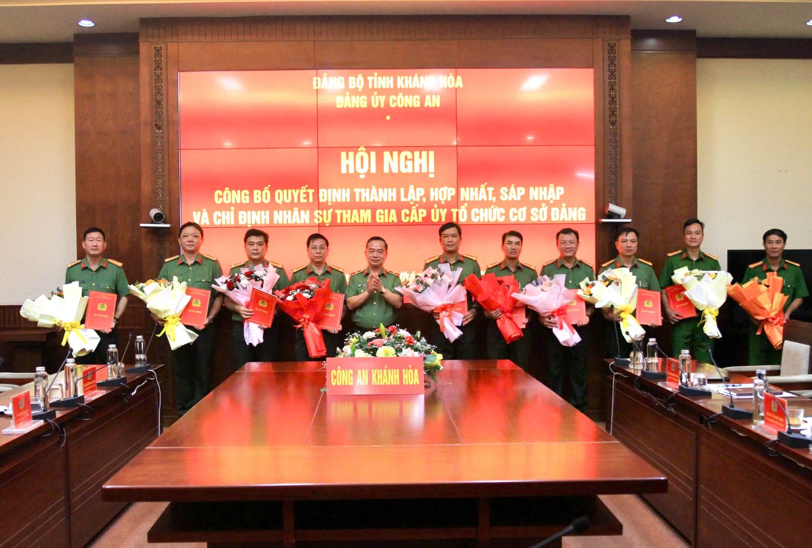 Tại Hội nghị, Đảng ủy Công an tỉnh Khánh Hòa đã trao 56 Quyết định về thành lập, hợp nhất, sáp nhập các đảng bộ, chi bộ trực thuộc Đảng ủy Công an tỉnh Khánh Hòa và chỉ định nhân sự Ban chấp hành, Ban thường vụ, Bí Thư, Phó Bí thư cấp sơ sở. Phát biểu tại Hội nghị, Đồng chí Giám đốc Công an tỉnh đề nghị cấp ủy, lãnh đạo các đơn vị và từng đồng chí cán bộ, đảng viên tiếp tục phát huy tinh thần trách nhiệm, đoàn kết, vượt qua khó khăn, nhanh chóng ổn định tổ chức, an tâm công tác, đưa hoạt động của các tổ chức đảng đi vào nền nếp, sinh hoạt hiệu quả, góp phần thực hiện thắng lợi nhiệm vụ chính trị của Đảng bộ Công an tỉnh trong tình hình mới.