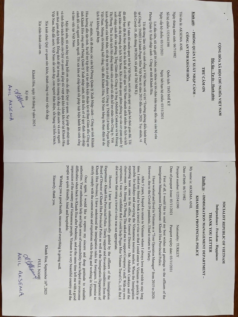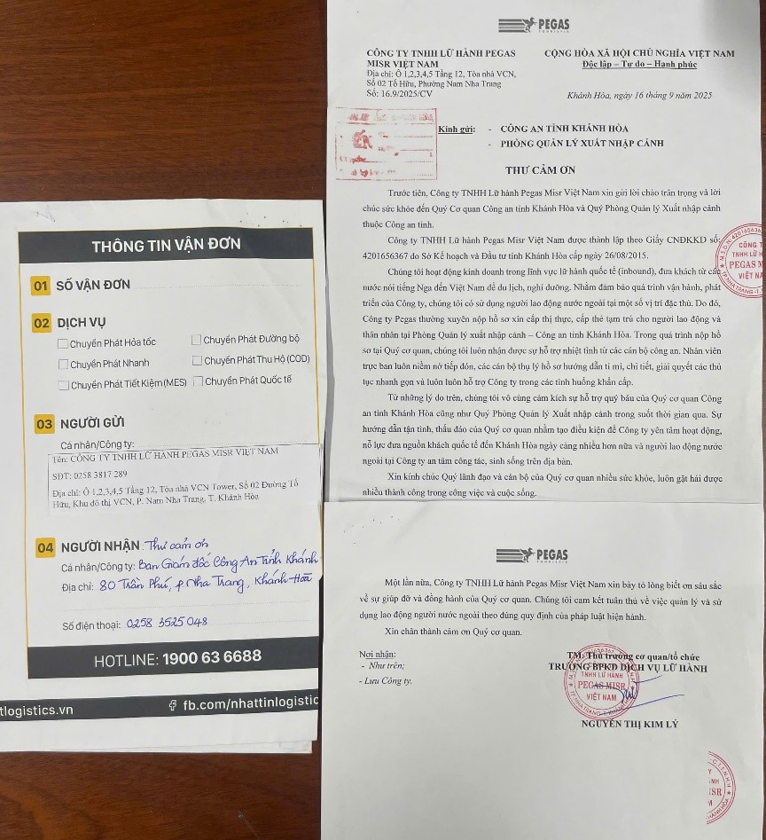 Minh chứng rõ nét là ngày 23/9/2025, Phòng Quản lý xuất nhập cảnh nhận được thư cảm ơn từ ông Aksema Anil, quốc tịch Thổ Nhĩ Kỳ và Công ty TNHH Lữ hành Pegas Misr Việt Nam. Trong thư, cả cá nhân và doanh nghiệp đều bày tỏ thái độ trân trọng trước sự hỗ trợ kịp thời, hướng dẫn tận tình và tinh thần phục vụ trách nhiệm của cán bộ Phòng Quản lý xuất nhập cảnh, qua đó giúp tháo gỡ khó khăn trong quá trình cư trú, làm việc và hoạt động kinh doanh của người nước ngoài và doanh nghiệp tại Khánh Hòa. Các thư cảm ơn nhấn mạnh, sự đồng hành của Phòng Quản lý xuất nhập cảnh không chỉ tạo thuận lợi cho người nước ngoài và doanh nghiệp duy trì hoạt động mà còn góp phần quan trọng trong việc thu hút khách du lịch, chuyên gia, lao động quốc tế đến với Khánh Hòa.