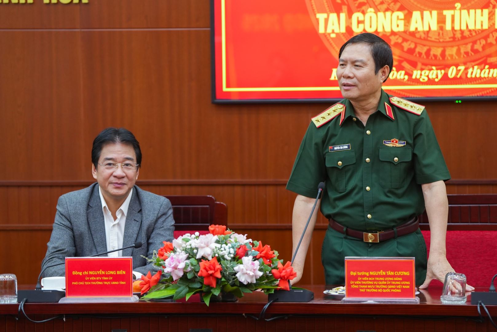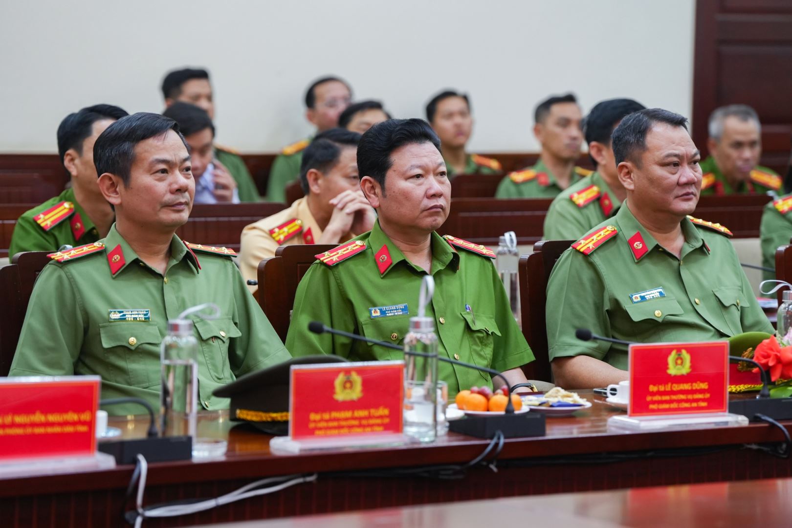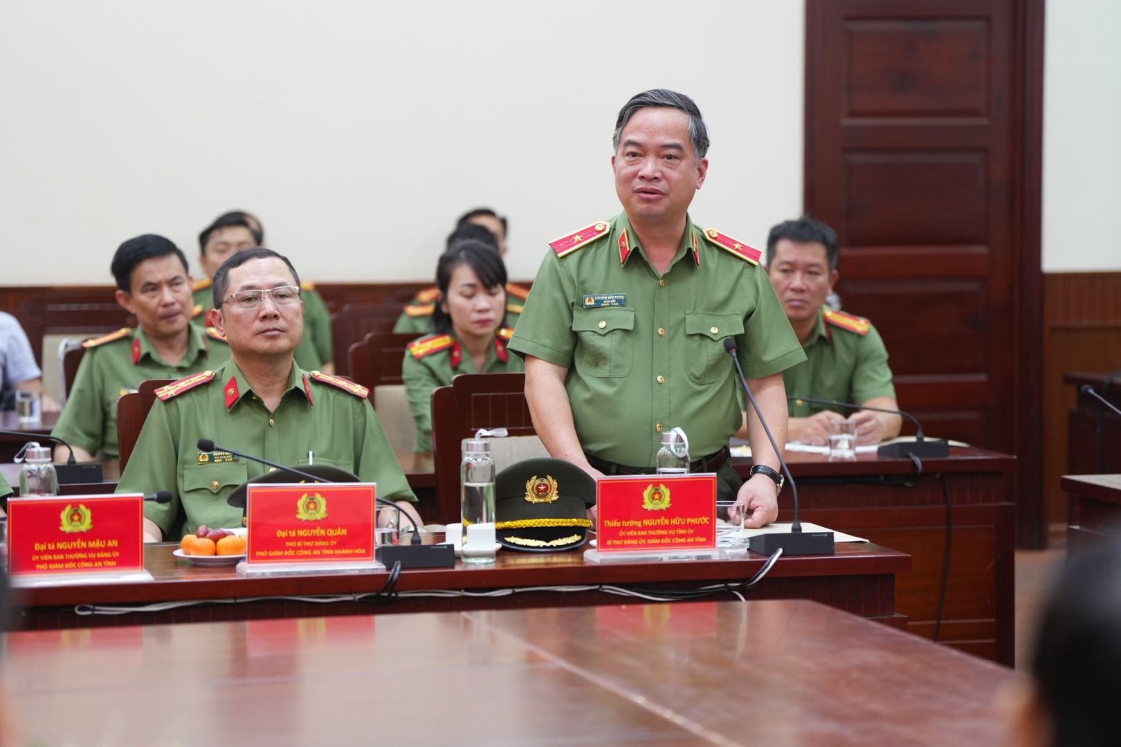 Đón tiếp đoàn công tác của Bộ Quốc phòng có sự tham dự của đồng chí Nguyễn Long Biên, Uỷ biên Ban Thường vụ Tỉnh uỷ, Phó Chủ tịch UBND tỉnh Khánh Hoà; Thiếu tướng Nguyễn Hữu Phước, Uỷ viên Ban Thường vụ Tỉnh uỷ, Bí thư Đảng uỷ, Giám đốc Công an tỉnh; các đồng chí Phó Giám đốc và đại diện lãnh đạo các phòng nghiệp vụ trong Công an tỉnh.