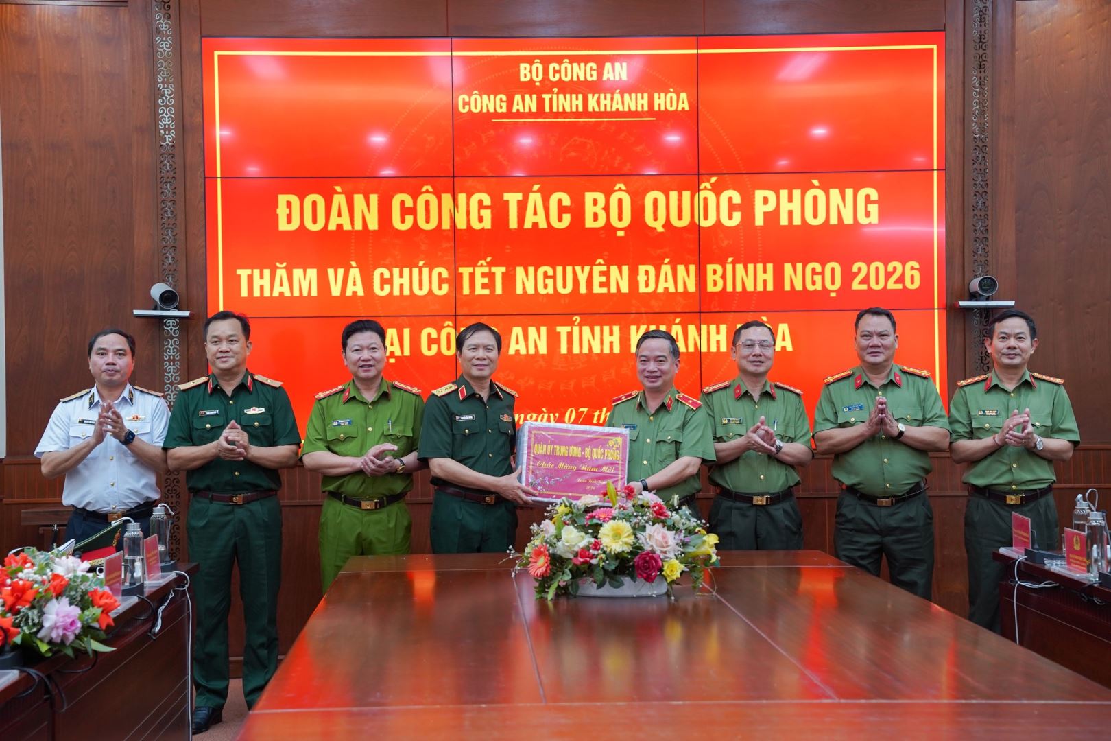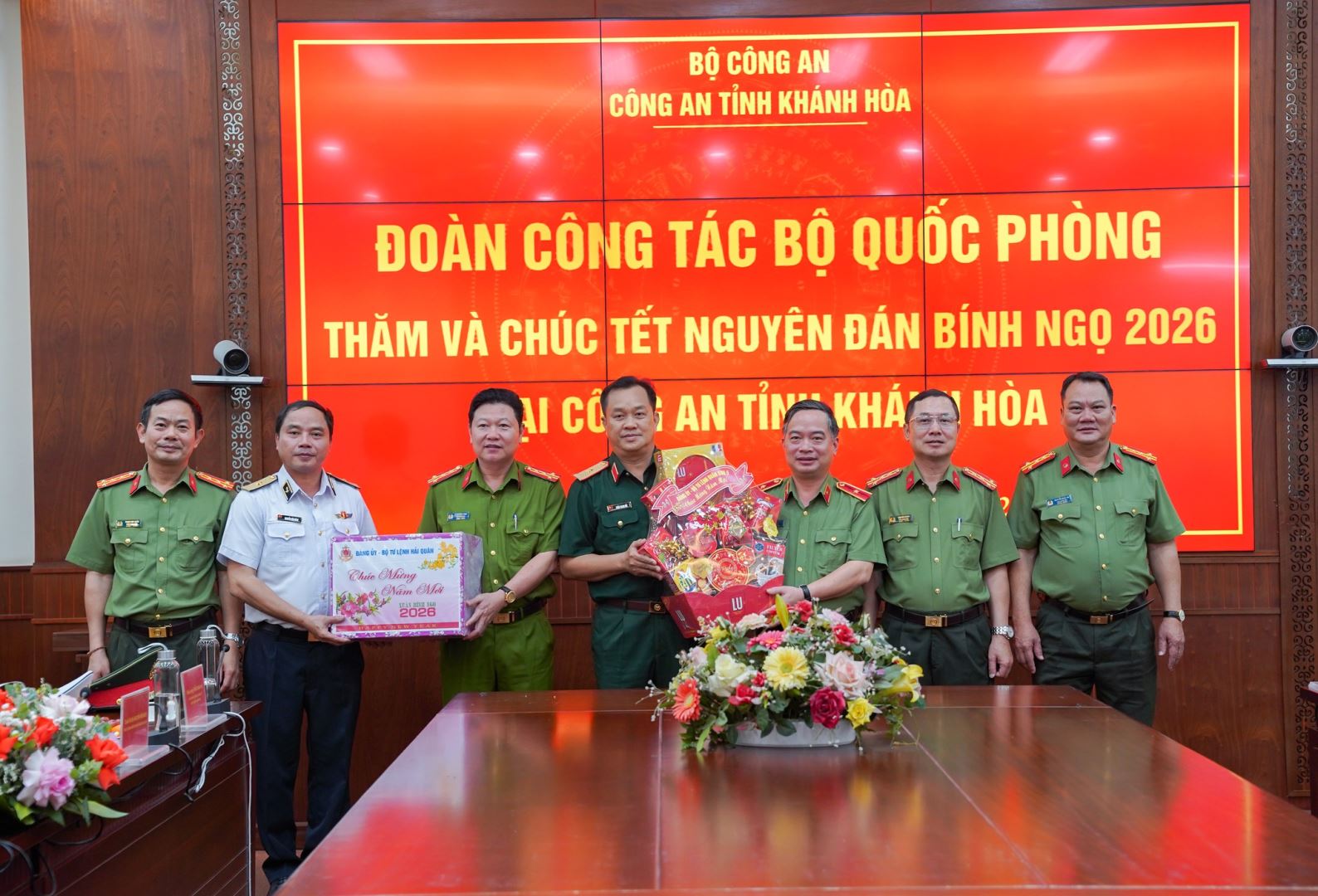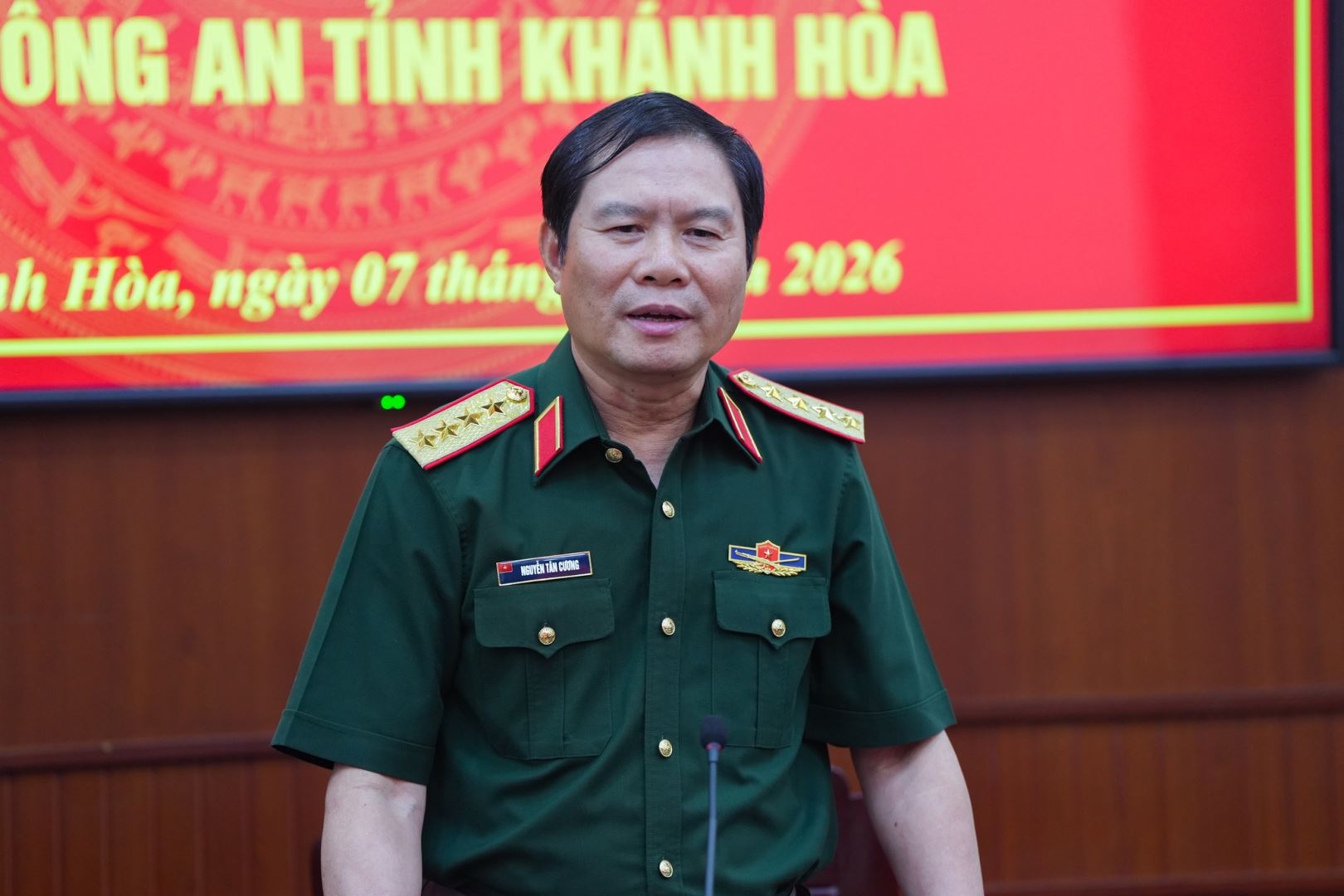 Nhân dịp chuẩn bị đón Tết Nguyên đán Bính Ngọ 2026, chiều ngày 7/2, đoàn công tác của Bộ Quốc phòng do Đại tướng Nguyễn Tân Cương, Uỷ viên Trung ương Đảng, Uỷ viên Thường vụ Quân uỷ Trung ương, Tổng Tham mưu trưởng Quân đội nhân dân Việt Nam, Thứ trưởng Bộ Quốc phòng làm trưởng đoàn đã đến thăm và chúc Tết tại Công an tỉnh Khánh Hoà. Tham gia đoàn công tác còn có: Thiếu tướng Hà Như Lợi, Phó Chủ nhiệm Tổng cục Hậu cần - Kỹ thuật Quân đội nhân dân Việt Nam; đại diện lãnh đạo, chỉ huy một số cơ quan chức năng của Bộ Quốc phòng, Bộ Tổng Tham mưu.