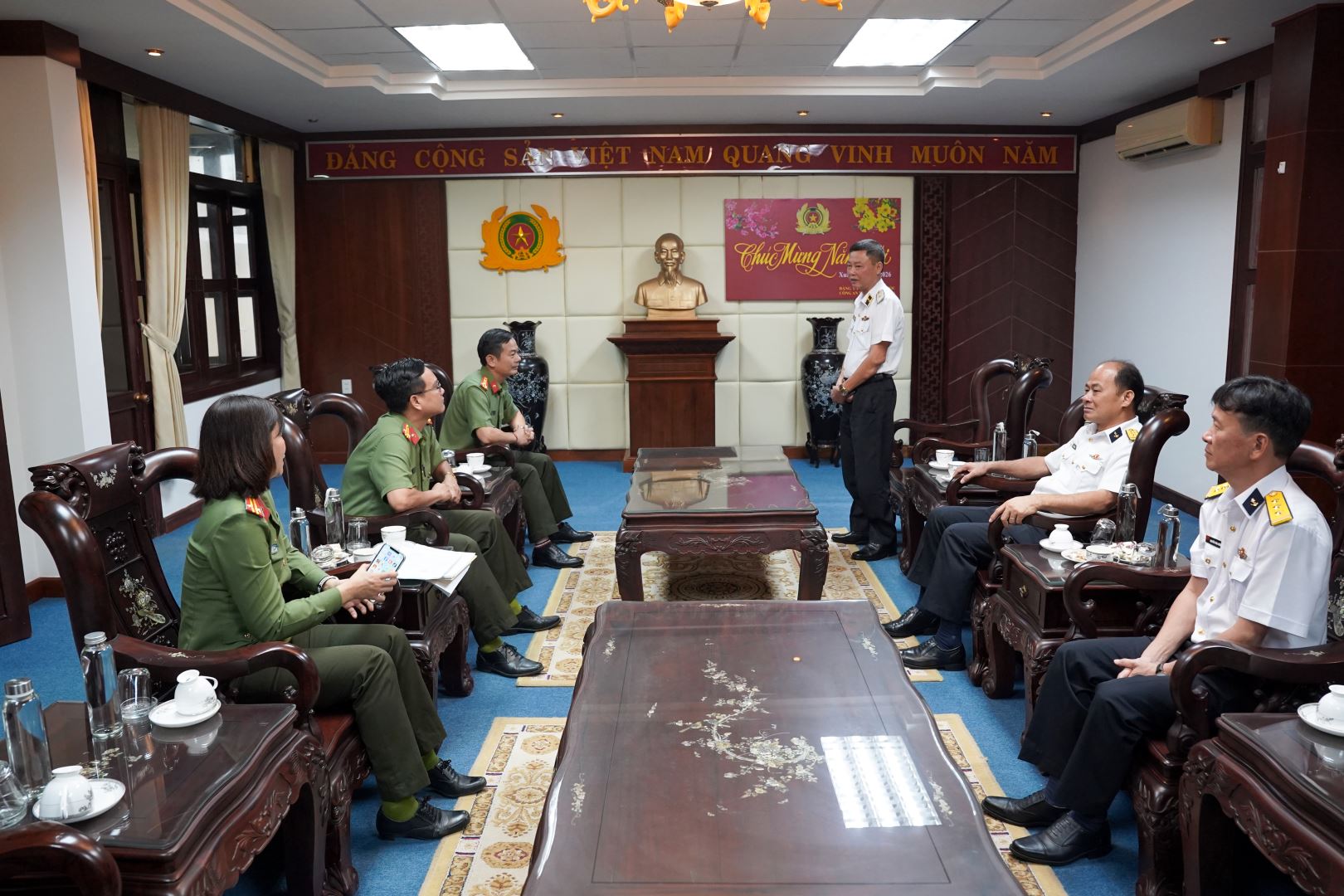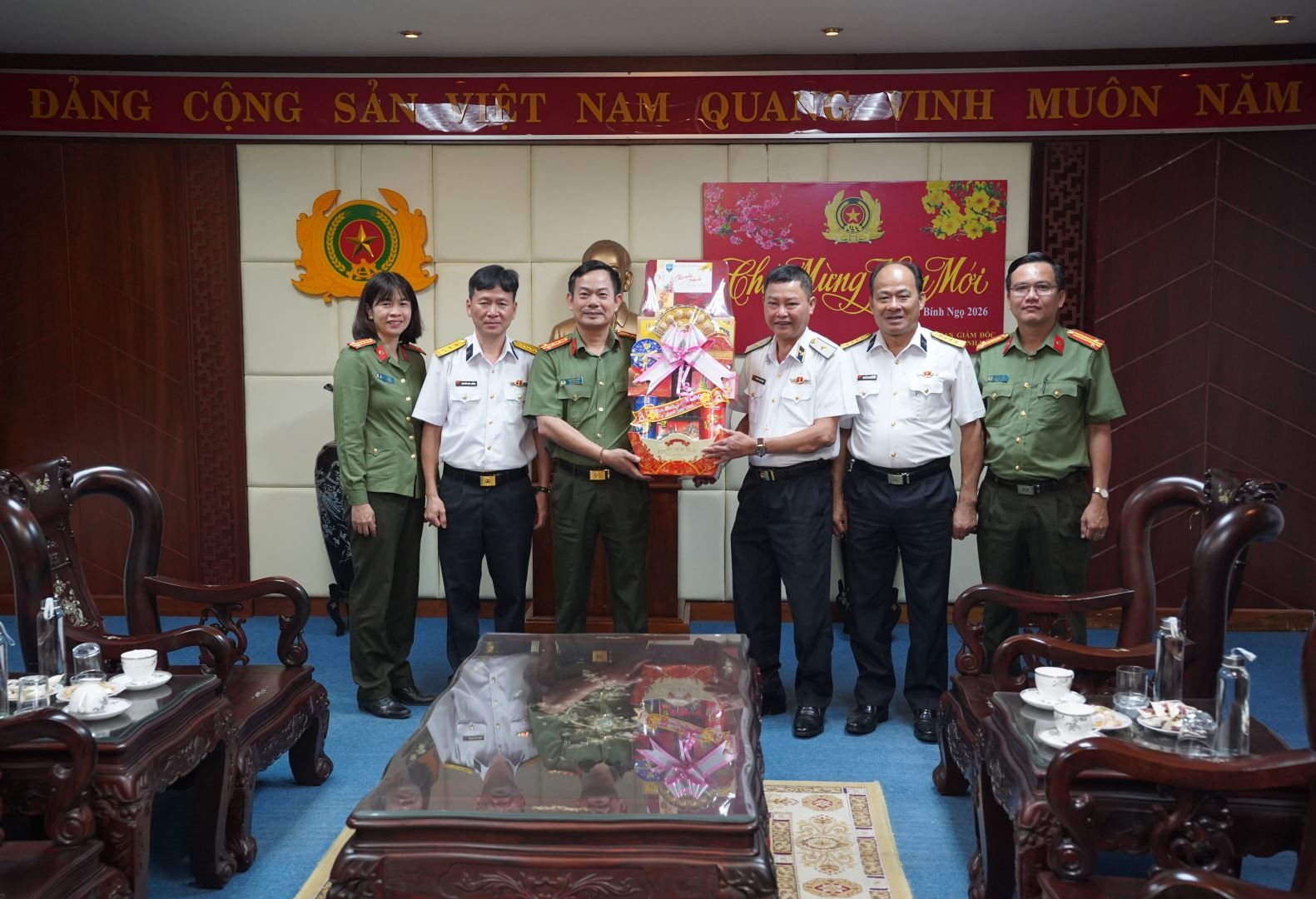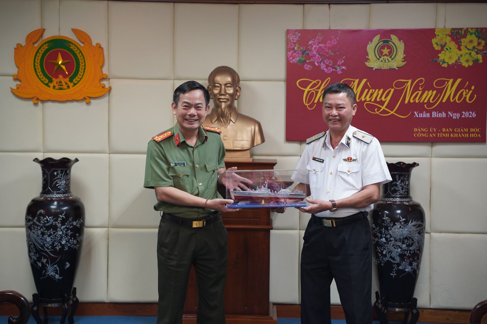 Chuẩn Đô đốc Nguyễn Anh Tuấn, Tư lệnh Vùng 4 Hải quân chúc Tết, tặng quà Công an tỉnh Khánh Hòa
