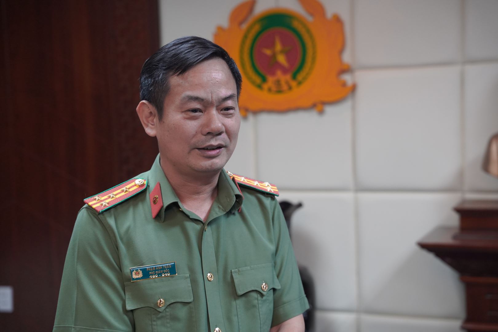 Đại tá Phạm Anh Tuấn, Phó Giám đốc Công an tỉnh phát biểu tại buổi thăm.