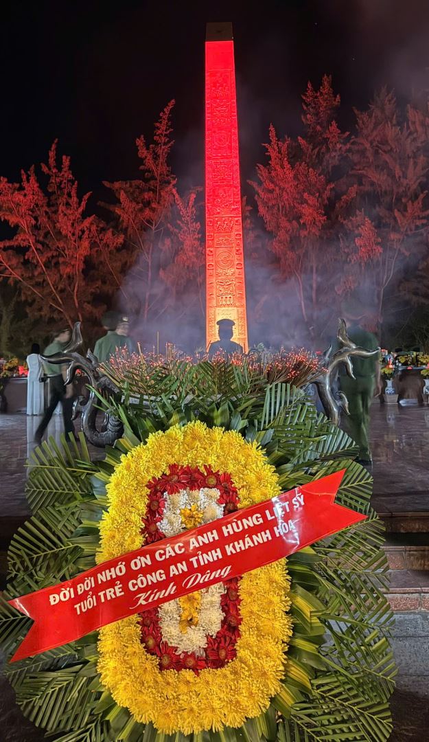 Tối ngày 15/4/2026, Đoàn công tác Đoàn Thanh niên Công an tỉnh Khánh Hòa đã tổ chức lễ dâng hoa, dâng hương, tưởng niệm các anh hùng liệt sĩ tại Nghĩa trang Hàng Dương (Đặc khu Côn Đảo, thành phố Hồ Chí Minh), mở đầu cho hành trình về nguồn đầy xúc động.
