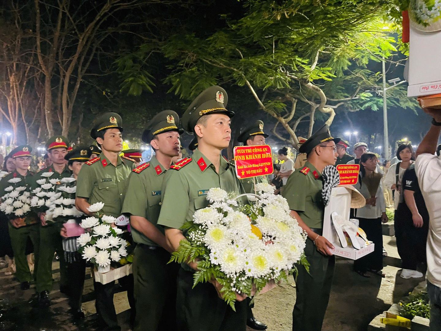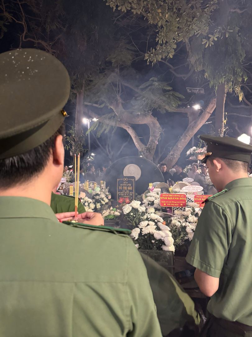 Trước anh linh cố Tổng Bí thư Lê Hồng Phong, nhà yêu nước Nguyễn An Ninh, Nữ Anh hùng LLVTND Võ Thị Sáu và hàng vạn anh linh các bậc tiền bối cách mạng, tuổi trẻ Công an tỉnh Khánh Hòa đã kính cẩn nghiêng mình, bày tỏ lòng biết ơn vô hạn đối với những hy sinh to lớn của thế hệ cha anh.