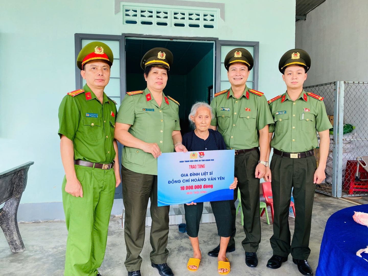 Nhân kỷ niệm Ngày thành lập lực lượng Công an nhân dân, Đoàn đã ân cần thăm hỏi sức khỏe, tình hình đời sống của thân nhân Liệt sĩ Hoàng Văn Yên, bày tỏ lòng tri ân sâu sắc với sự cống hiến, hi sinh của Liệt sĩ Hoàng Văn Yên trong công cuộc đấu tranh phòng, chống tội phạm, bảo vệ bình yên, hạnh phúc của nhân dân. Tại đây, Đoàn Thanh niên Công an tỉnh đã trao tặng gia đình đồng chí Liệt sĩ Hoàng Văn Yên số tiền 10 triệu đồng từ nguồn đóng góp của đoàn viên, thanh niên Công an tỉnh. Đây là hoạt động thể hiện sự tri ân sâu sắc của tuổi trẻ Công an tỉnh trước sự đóng góp, hy sinh của đồng chí đối với Lực lượng Công an nhân dân nói chung và lực lượng Công an Khánh Hòa nói riêng.
