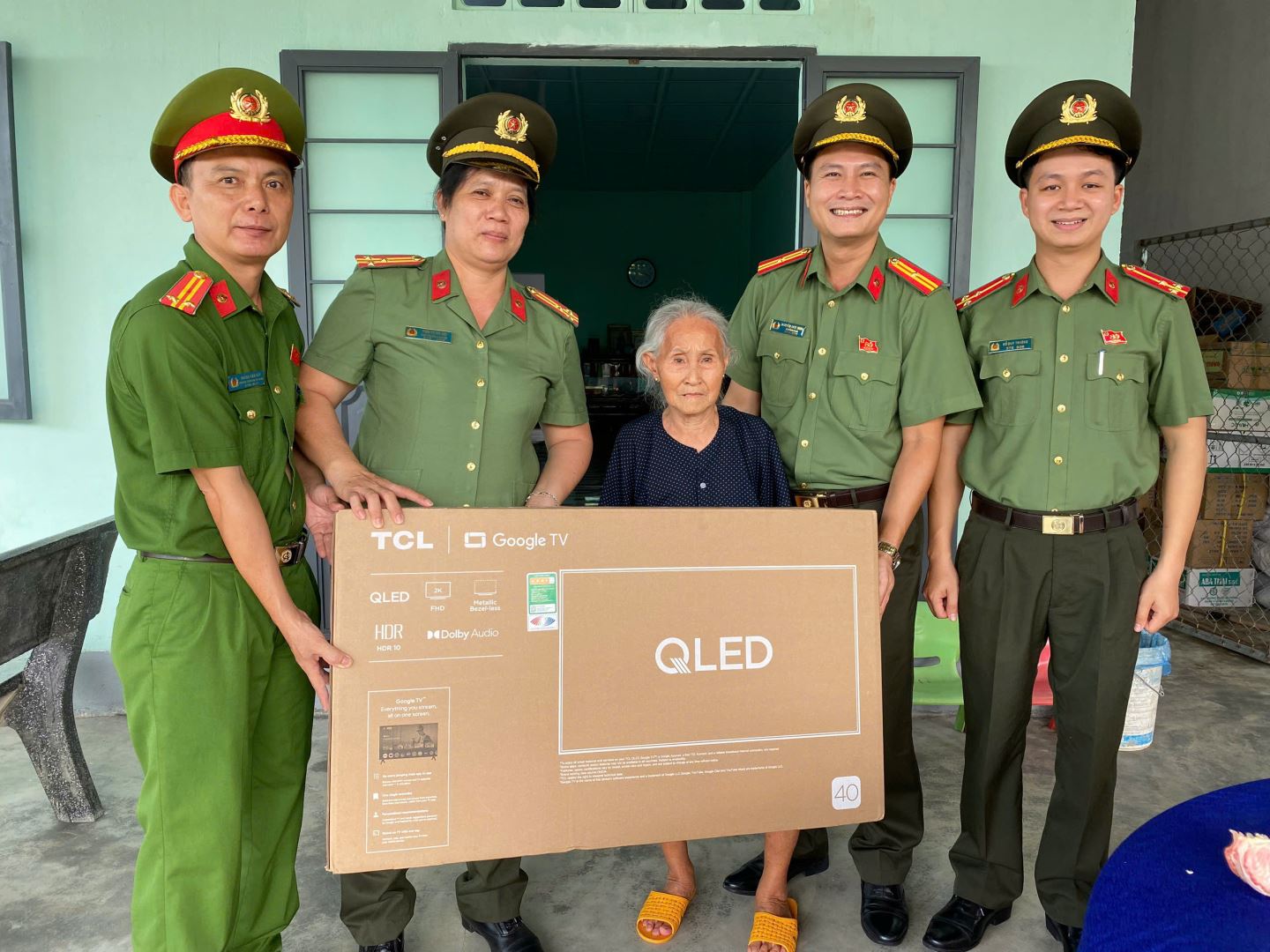 Đoàn trao tặng gia đình thân nhân Liệt sĩ một chiếc tivi.
