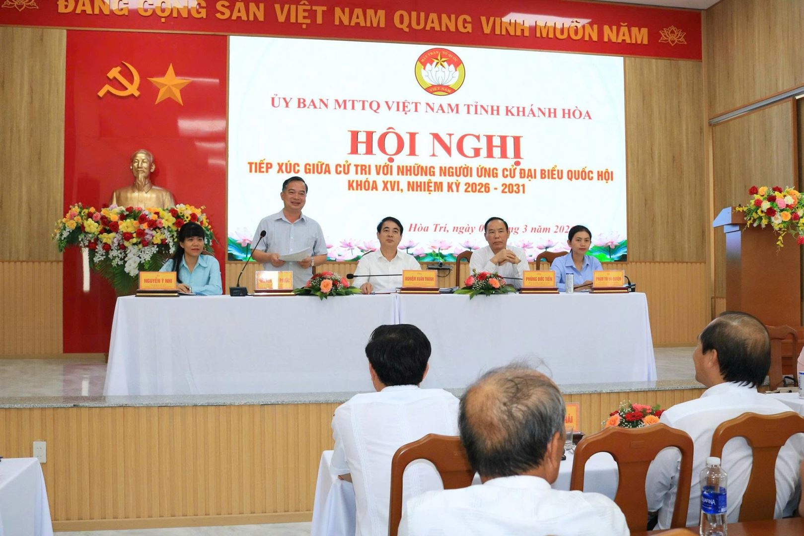 Tiếp tục chương trình vận động cử tri tranh cử Đại biểu Quốc hội khoá XVI, nhiệm kỳ 206-2031, ngày 05/3/2026, các ứng cử viên Đại biểu Quốc hội khóa XVI, thuộc Đơn vị bầu cử số 1 tỉnh Khánh Hòa đã tiếp xúc cử tri tại xã Bắc Ninh Hòa, xã Hòa Trí, xã Tây Ninh Hòa, xã Tân Định.