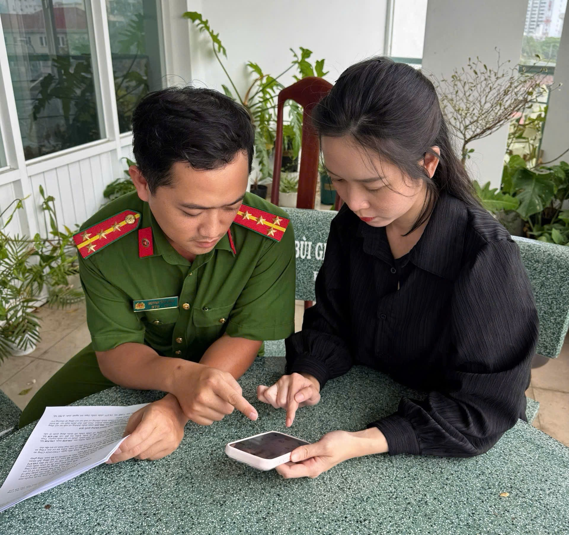 Cán bộ phòng Cảnh sát QLHC về TTXH hướng dẫn tích hợp tài khoản an sinh xã hội trên VNeID