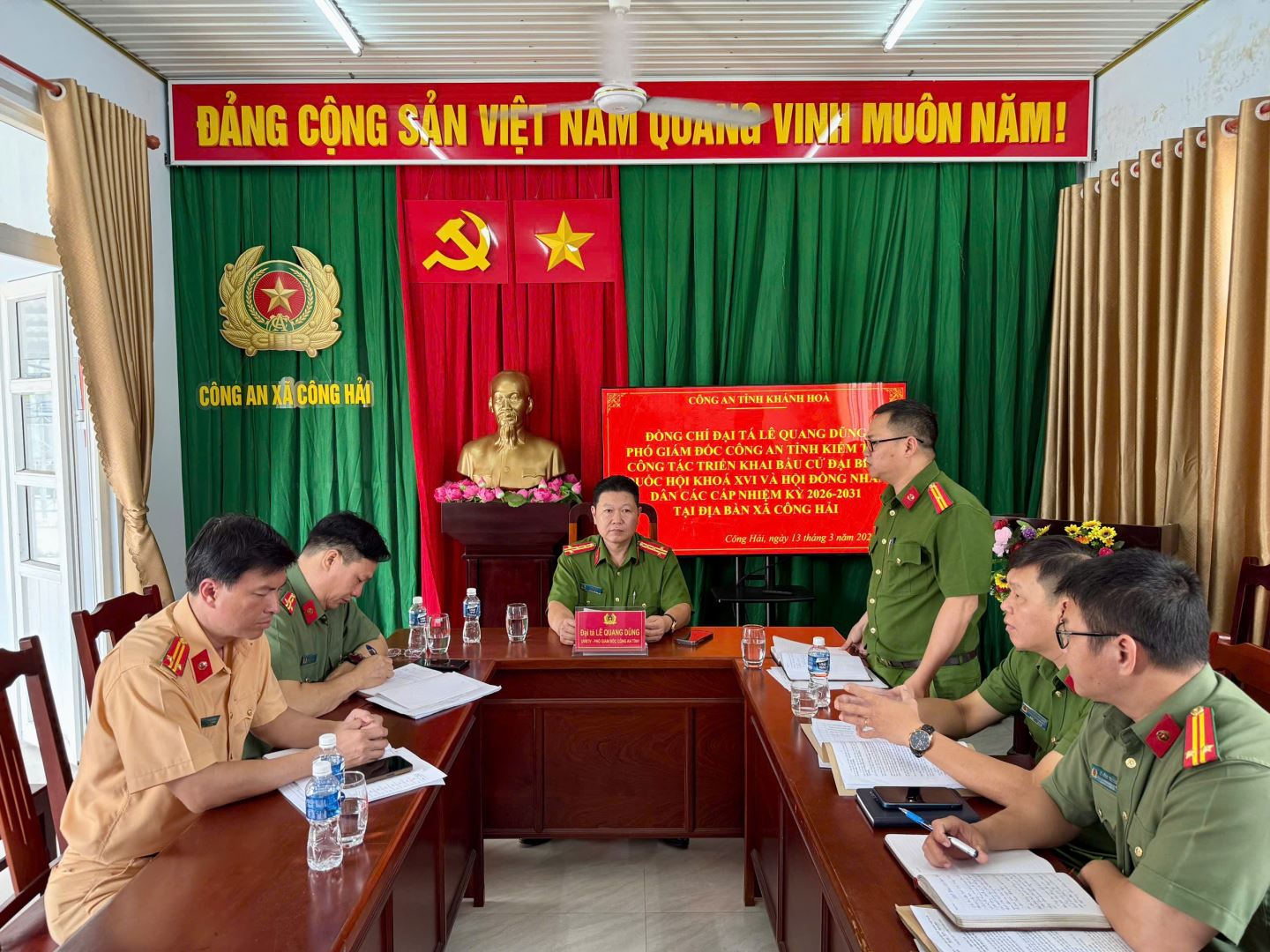 Sáng ngày 13/3/2026, đoàn công tác của Công an tỉnh do đồng chí Đại tá Lê Quang Dũng – Phó Giám đốc Công an tỉnh làm Trưởng đoàn đã đến kiểm tra công tác đảm bảo an ninh, trật tự phục vụ bầu cử tại xã Công Hải.