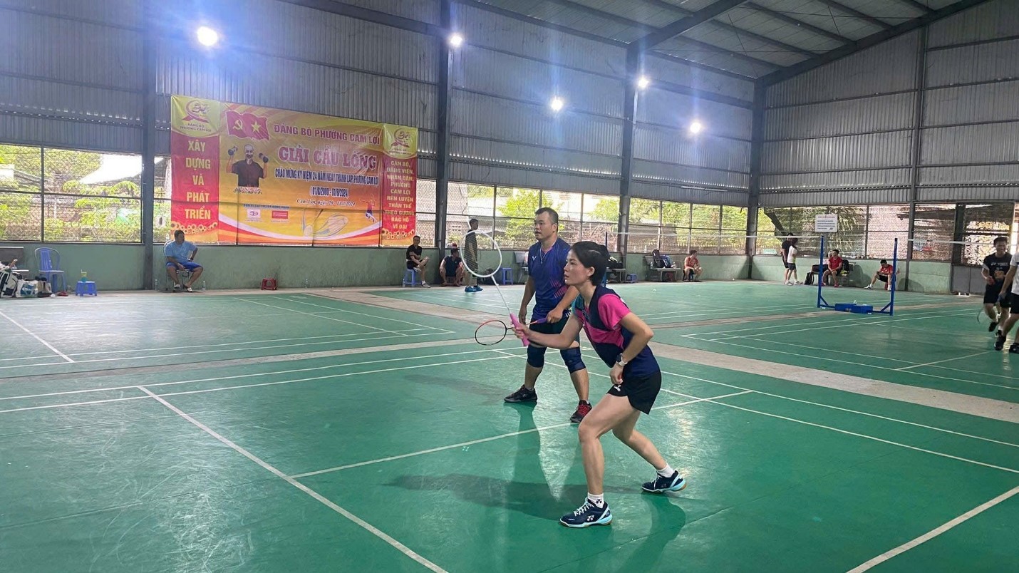 Thành viên Hội Phụ nữ tham gia thi đấu giải cầu lông