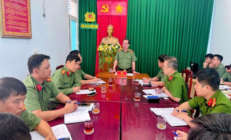 Đồng chí Thiếu tướng Nguyễn Hữu Phước - Giám đốc Công an tỉnh chủ trì cuộc họp