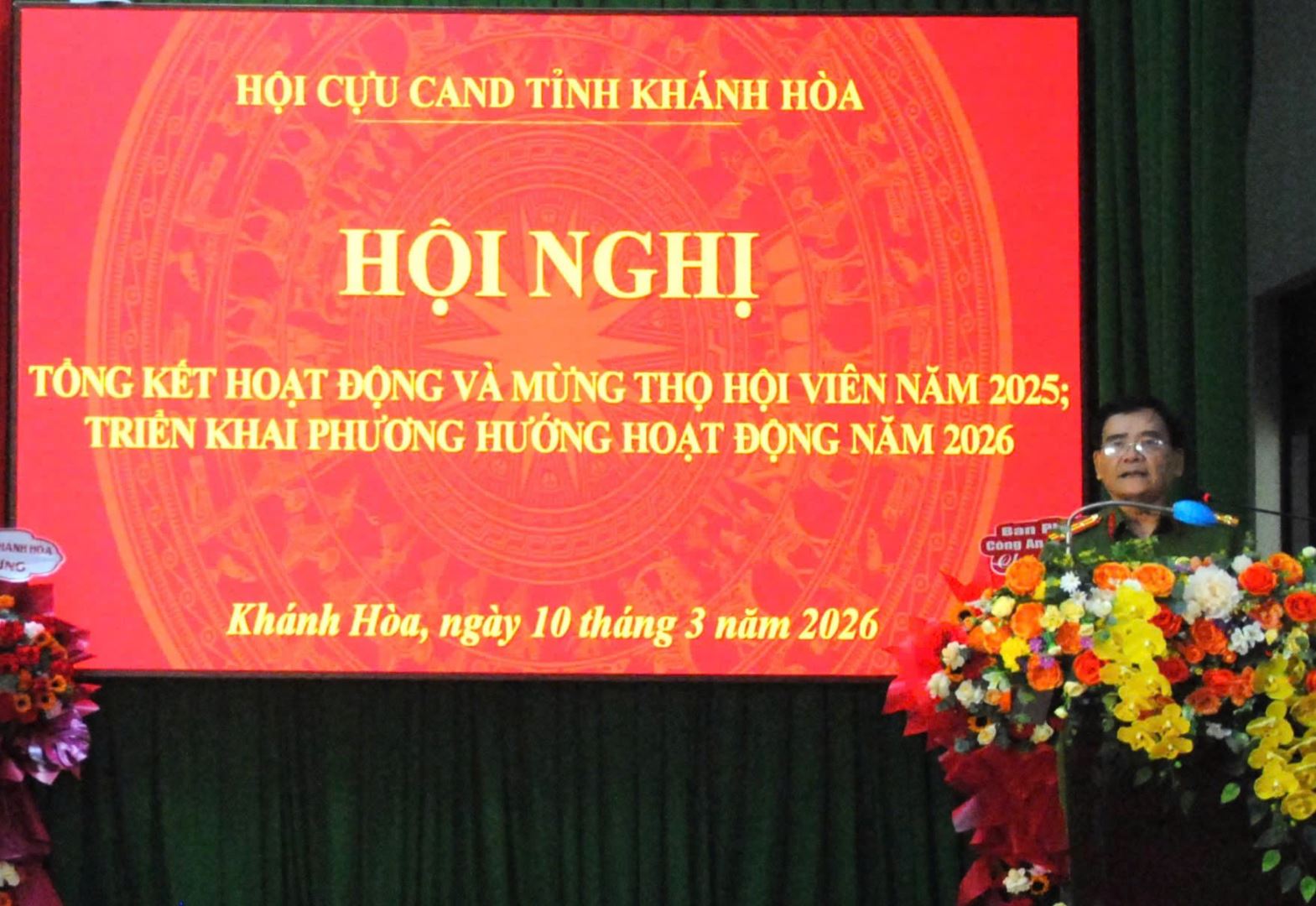 Phát biểu chỉ đạo tại hội nghị, Thượng tướng Lê Quý Vương, Chỉ tịch Hội Cựu CAND Việt Nam và Đại tá Lê Quang Đồng, Phó Giám đốc Công an tỉnh nhiệt liệt biểu dương và đánh giá cao những thành tích và kết quả công tác năm 2025 của Hội Cựu CAND tỉnh; chỉ đạo một số nội dung công tác trọng tâm để Hội tiếp tục nêu cao tinh thần trách nhiệm, đoàn kết, thống nhất; triển khai thực hiện nghị quyết Đại hội XIV của Đảng, bám sát chương trình, kế hoạch, nhiệm vụ của Trung ương Hội, Ủy ban MTTQ Việt Nam tỉnh, sở Nội vụ và CAT; của cấp ủy và chính quyền các cấp; tích cực tham gia các hoạt động của địa phương và các nhiệm vụ, chuyên đề đột xuất khác; giữ vững và phát huy mạnh mẽ truyền thống tốt đẹp của lực lượng CAND - xứng đáng với vị trí, vai trò của tổ chức hội được Đảng, Nhà nước giao nhiệm vụ - đóng góp có hiệu quả và thiết thực nhất cho công cuộc xây dựng, phát triển kinh tế - xã hội của tỉnh Khánh Hoà; cùng cả nước vững bước vào kỷ nguyên mới, kỷ nguyên vươn mình đến hùng cường, thịnh vượng, phồn vinh và hạnh phúc của Dân tộc Việt Nam.