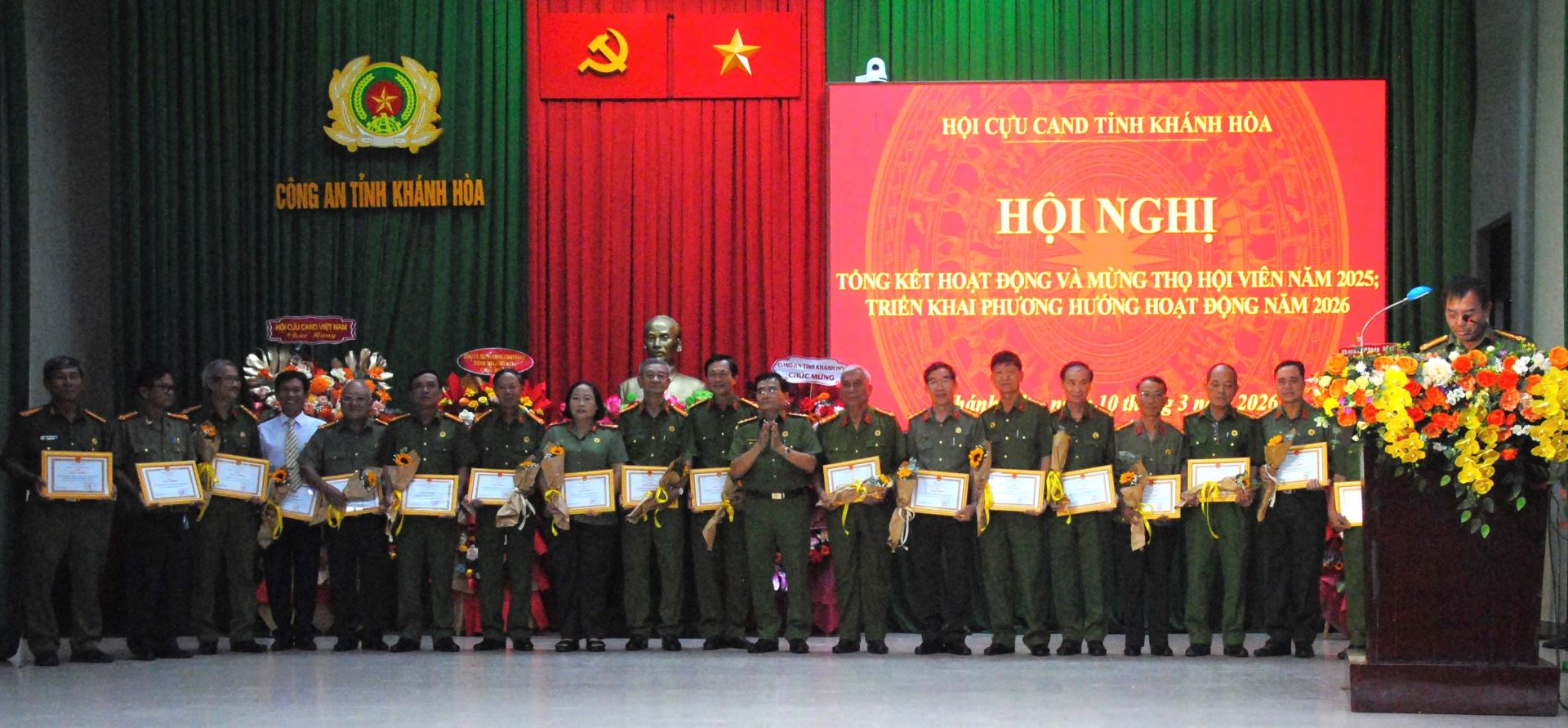 Sáng ngày 10/3, Hội Cựu Công an nhân dân (CAND) tỉnh Khánh Hòa đã tổ chức thành công Hội nghị Tổng kết hoạt động và Mừng thọ hội viên năm 2025, đồng thời triển khai nhiệm vụ, phương hướng công tác cho năm 2026.