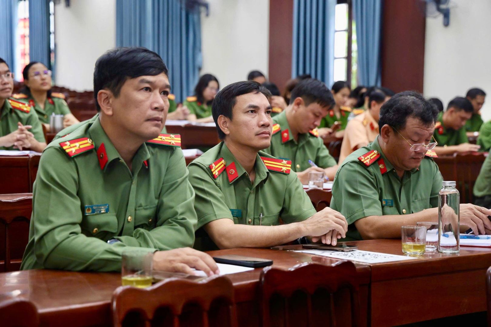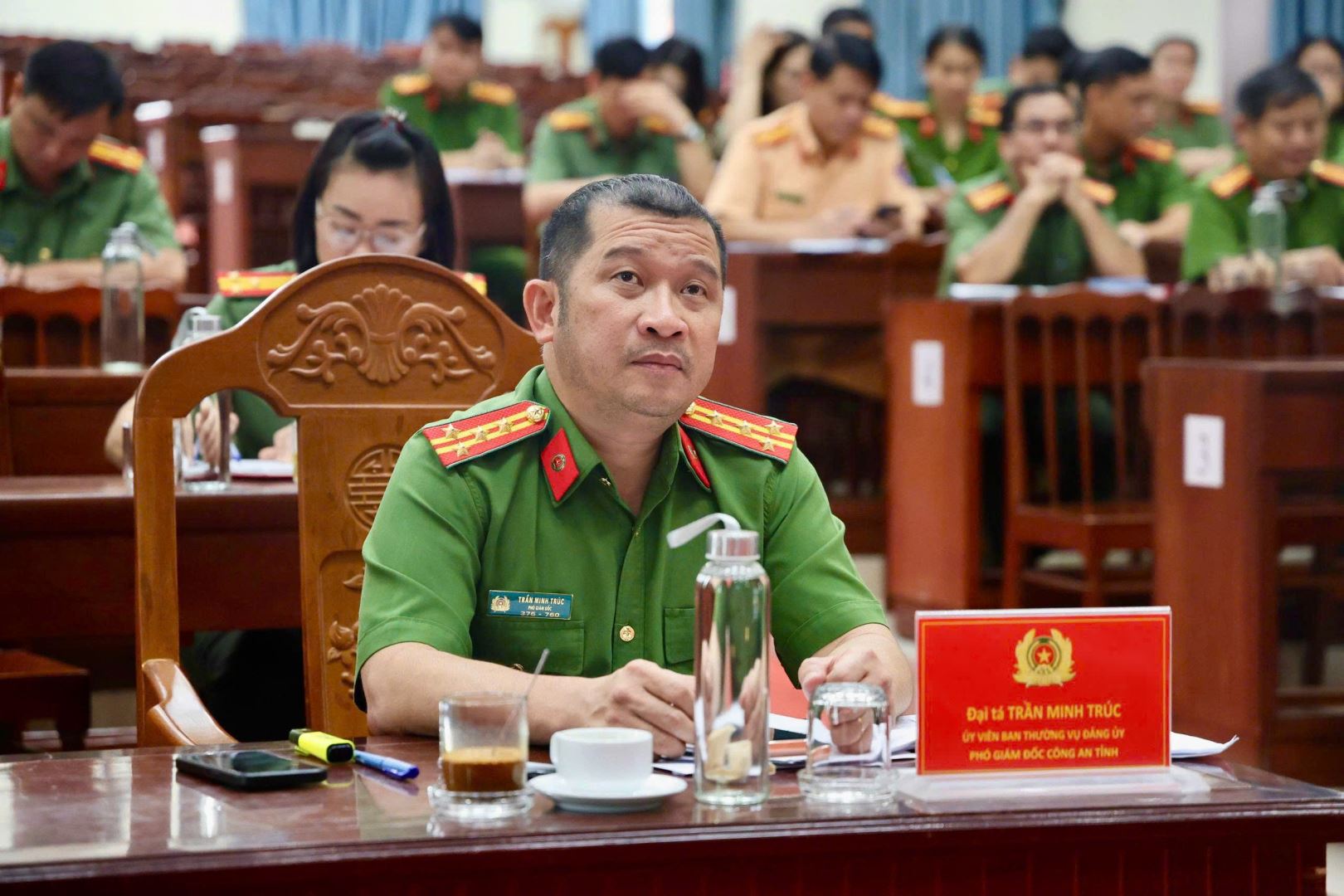 Đại tá Trần Minh Trúc, Uỷ viên Ban thường vụ Đảng uỷ, Phó Giám đốc Công an tỉnh tham dự Hội nghị tại điểm cầu Công an tỉnh Khánh Hòa.