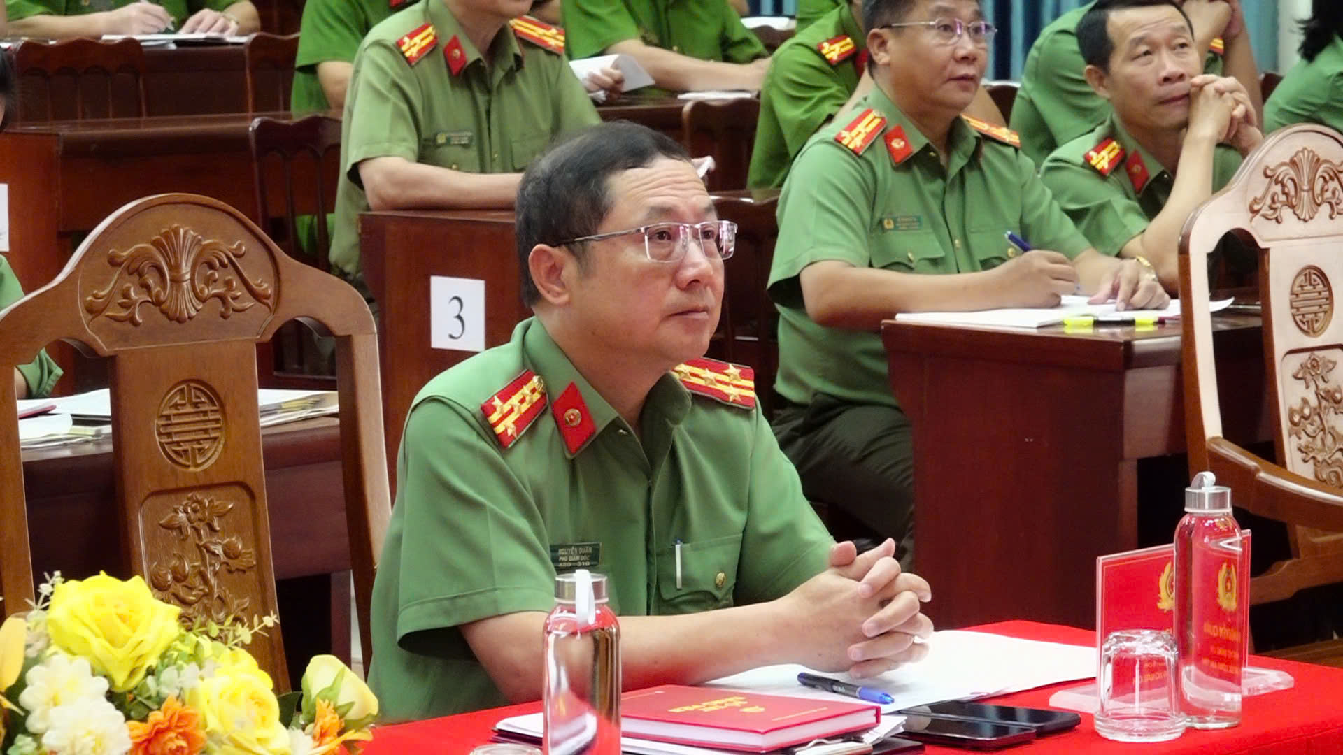 Đại tá Nguyễn Quân, Phó Giám đốc Công an tỉnh tham dự hội nghị.