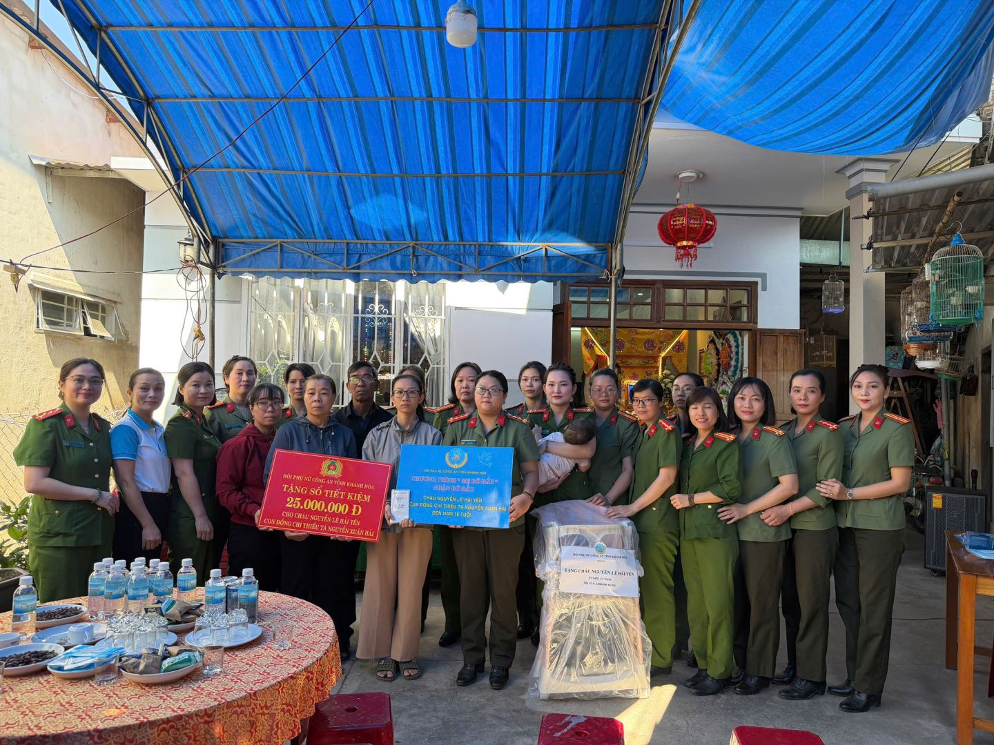 Hội Phụ nữ Công an tỉnh đã trao tặng sổ tiết kiệm trị giá 25 triệu đồng cùng quà ghế ăn dặm trẻ em cho con Nguyễn Lê Hải Yến.