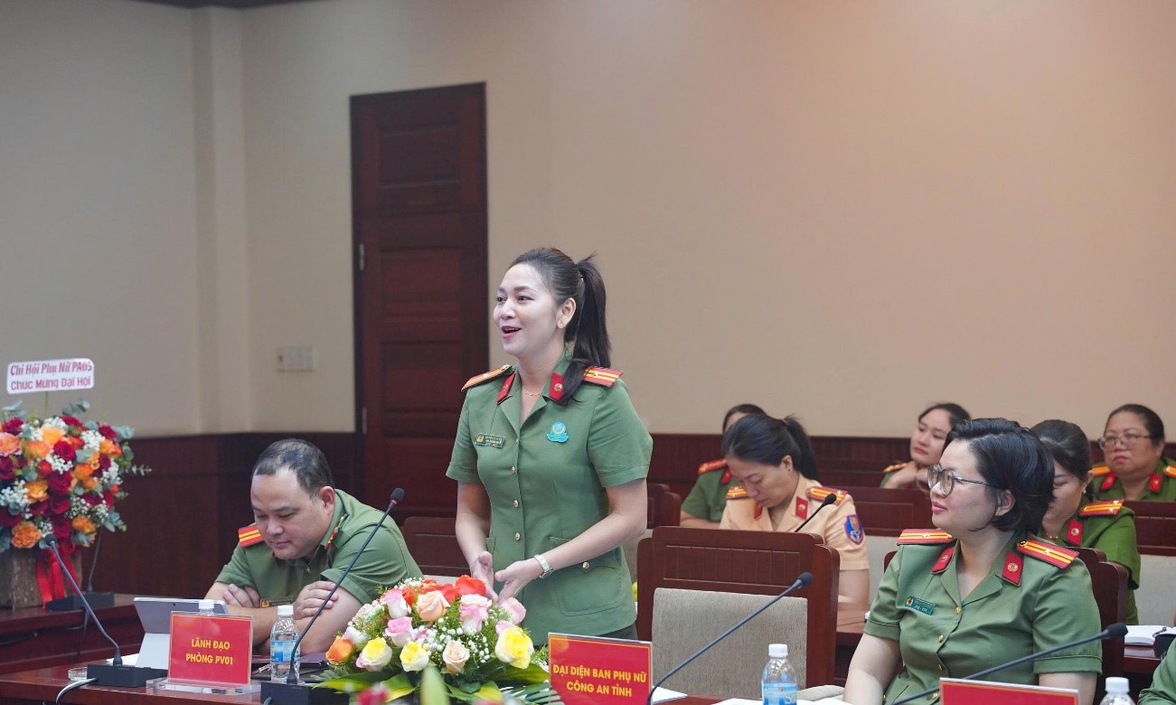 Tại Đại hội cũng đã công bố Quyết định chỉ định nhân sự Ban Chấp hành Hội Phụ nữ Phòng Tham mưu, nhiệm kỳ 2025 – 2030 với 05 đồng chí. Đồng chí Trung tá Hồ Thị Hậu – Chủ tịch Hội đã thay mặt Ban Chấp hành Hội nhiệm kỳ 2025 – 2030 bày tỏ khí thế, quyết tâm thực hiện thắng lợi các nhiệm vụ đề ra trong nhiệm kỳ 2025 – 2030, cùng các chị em trong Hội đồng lòng, đoàn kết, đưa phong trào Hội của Phòng Tham mưu nói riêng, của Công an tỉnh nói chung ngày càng vững mạnh, đóng góp vào phong trào, công tác phụ nữ chung của toàn tỉnh.