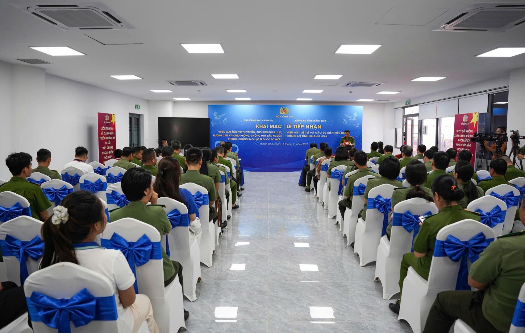 Trước đó, Cục Công tác chính trị - Bộ Công an đã tổ chức lễ tiếp nhận hiện vật liệt sĩ và các sự kiện tiêu biểu của Công an tỉnh Khánh Hòa. Tại buổi lễ, Cục Công tác chính trị đã tiếp nhận các hiện vật gồm: bộ quân phục Cảnh sát nhân dân của Liệt sĩ Hoàng Văn Yên, nguyên Phó trưởng Công an xã Khánh Thành, huyện Khánh Vĩnh (cũ) do gia đình Liệt sĩ trao tặng; tiếp nhận biển hiệu trụ sở Công an thành phố Nha Trang, biển hiệu trụ sở Công an huyện Diên Khánh, chiếc xe máy hiệu Sirius phục vụ trong chuyên án ma túy 199Đ ngày 26/3/2025 cán bộ Phòng Cảnh sát ĐTTP về ma túy; Quyết định khởi tố vụ án, Bằng khen của Chủ tịch UBND tỉnh và bộ đồ grab các trinh sát sử dụng trong quá trình điều tra trong chuyên án ma tuý 524M ở tỉnh Ninh Thuận (cũ).