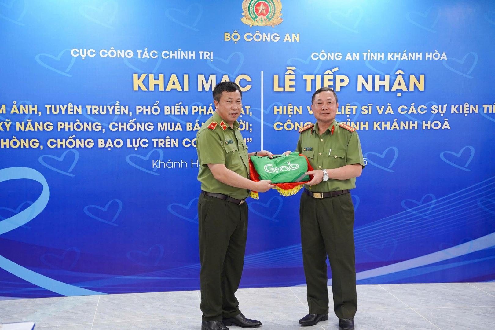 Thiếu tướng Nguyễn Công Bẩy, Phó Cục trưởng Cục Công tác chính trị tiếp nhận hiện vật của Công an tỉnh Khánh Hòa
