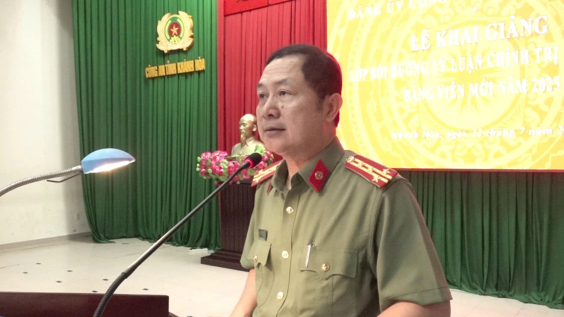 Sáng 22/7, Đảng ủy Công an tỉnh tổ chức khai giảng lớp bồi dưỡng lý luận chính trị cho đảng viên mới năm 2025. Tham gia lớp bồi dưỡng có 71 đảng viên thuộc các Chi bộ, đảng bộ cơ sở trực thuộc Đảng ủy Công an tỉnh. Dự lễ khai giảng có Đại tá Nguyễn Quân, Phó Bí thư Đảng ủy, Phó Giám đốc Công an tỉnh.