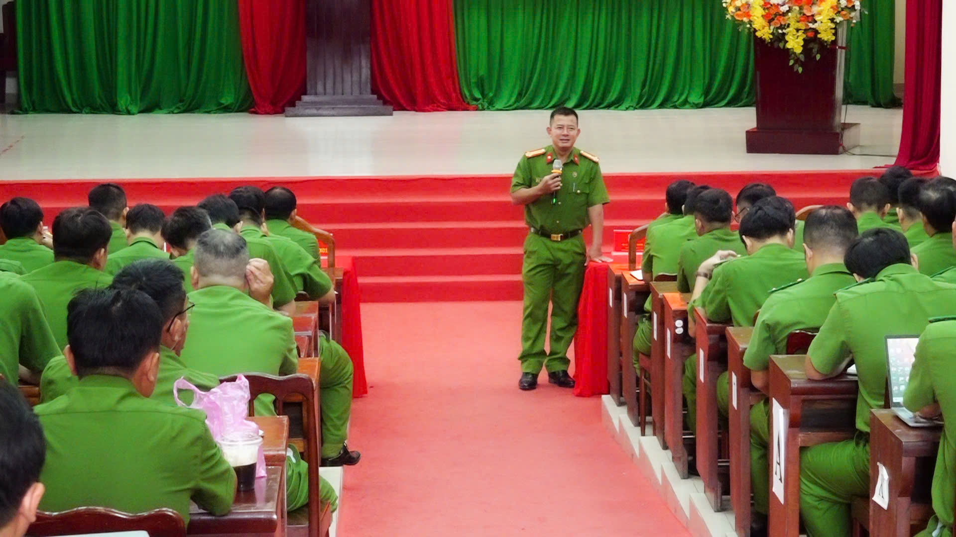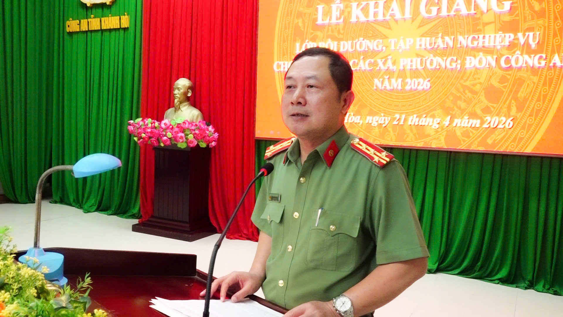 Sáng 21/4, Công an tỉnh đã tổ chức khai giảng lớp bồi dưỡng tập huấn nghiệp vụ cho trên 450 học viên là Chỉ huy, cán bộ Công an cấp xã, phường, Đồn Công an trên địa bàn tỉnh. Đồng chí Đại tá Nguyễn Quân, Phó Giám đốc Công an tỉnh dự lễ khai giảng.