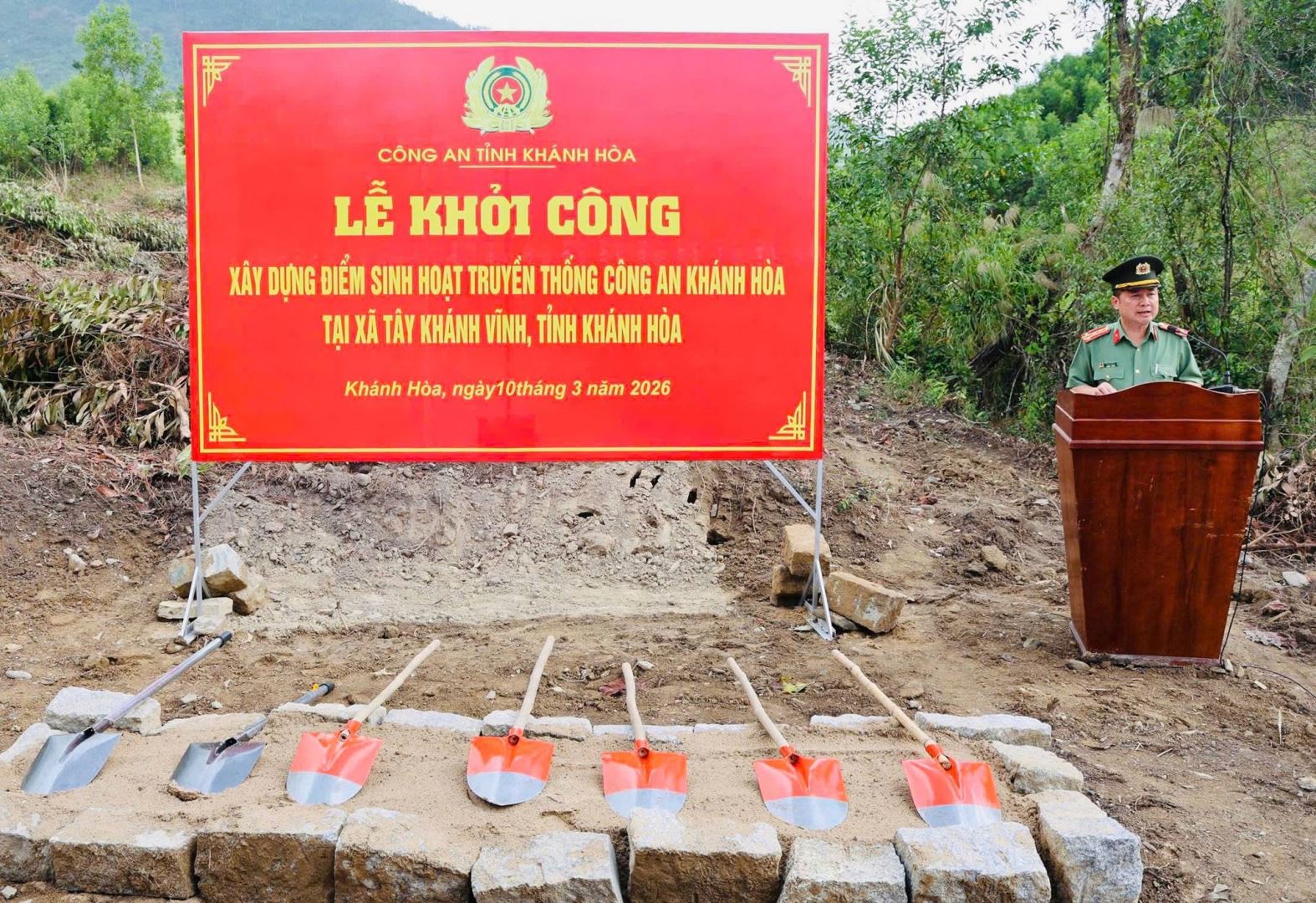 Nhằm hướng tới kỷ niệm 80 năm Ngày truyền thống lực lượng An ninh nhân dân (12/7/1946 – 12/7/2026) và 80 năm lực lượng Tham mưu CAND (18/4/1946 – 18/4/2026), sáng 10/3, Công an tỉnh Khánh Hòa đã tổ chức Lễ khởi công xây dựng điểm sinh hoạt truyền thống tại thôn A Xay, xã Tây Khánh Vĩnh.