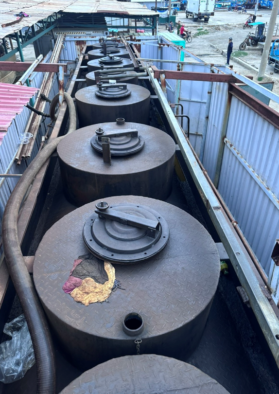 - Tại phân xưởng sản xuất nước đá (địa chỉ: Cảng cá Đá Bạc, TDP Linh Phú, phường Cam Linh): phát hiện 03 trụ bơm, 05 bồn chứa các loại đang chứa hơn 73.000 lít dầu DO không có đầy đủ hóa đơn, chứng từ chứng minh nguồn gốc, xuất xứ; 01 xe ôtô BKS 85C-017.23 do N.N.T (sinh năm 1969, trú phường Cam Ranh) điều khiển, trên xe chứa 19.000 lít dầu DO không có hóa đơn, chứng từ chứng minh nguồn gốc, xuất xứ.