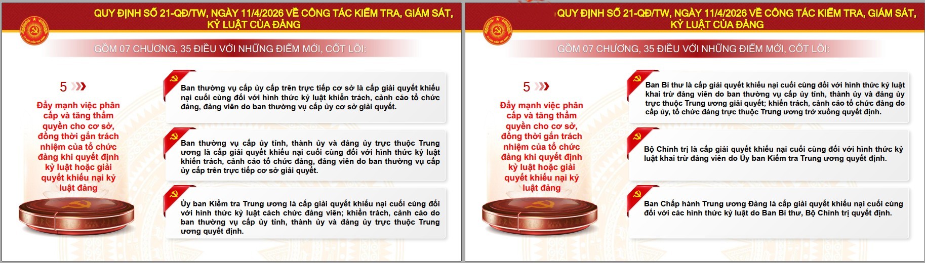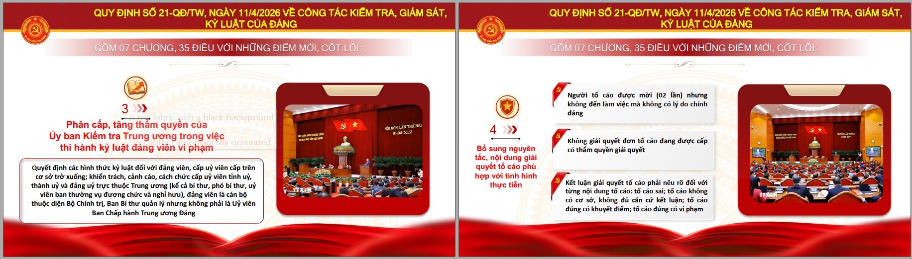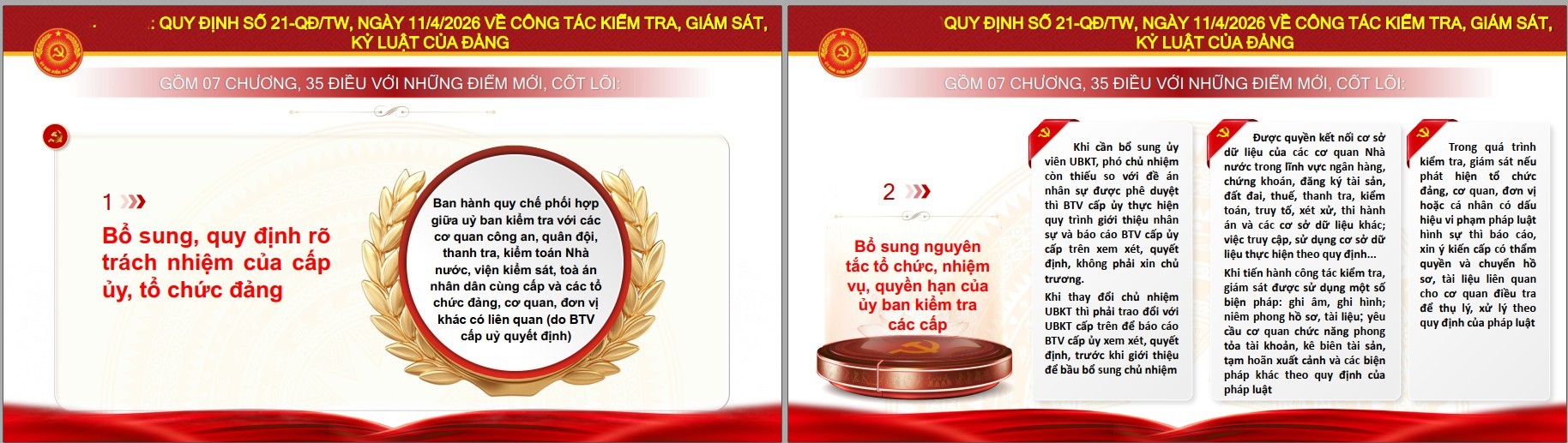 Toàn văn Quy định 21: https://tulieuvankien.dangcongsan.vn/van-ban-cua-dang/quy-dinh-so-21-qd-tw-ngay-11-4-2026-cua-ban-chap-hanh-trung-uong-dang-ve-cong-tac-kiem-tra-giam-sat-va-ky-luat-cua-dang.html?categoryId=102000092