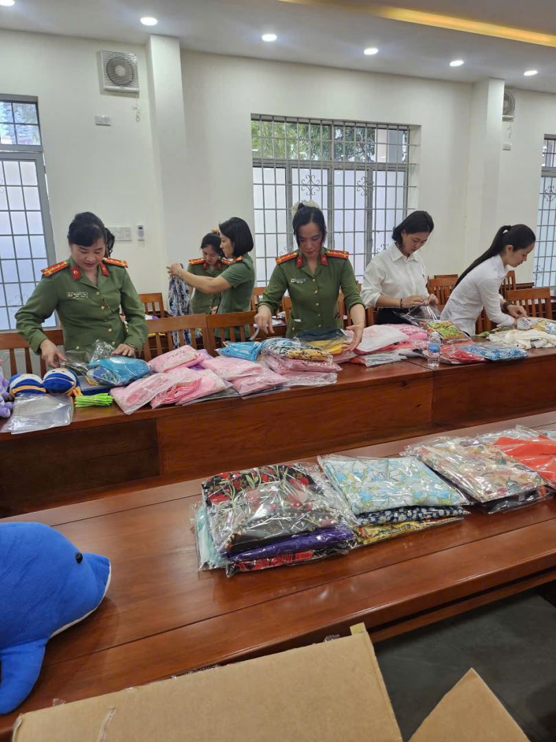 Ban Phụ nữ Công an tỉnh đã quyên góp được 225 bộ áo dài cùng nhiều đồ chơi dành cho trẻ em