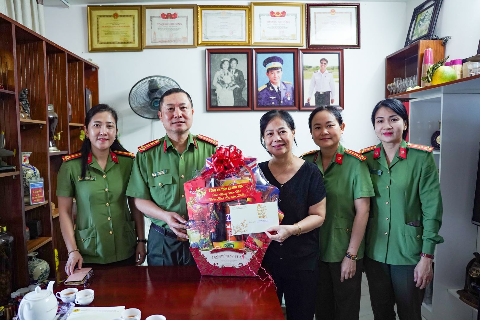 Thực hiện các hoạt động “Đền ơn, đáp nghĩa” của Công an tỉnh vào dịp Tết Nguyên đán hằng năm, ngày 29/1, các đoàn công tác của Công an tỉnh Khánh Hoà do Đại tá Nguyễn Quân, Phó Bí thư Đảng uỷ, Phó Giám đốc Công an tỉnh và Đại tá Nguyễn Đình Thuận Hải, Phó Giám đốc Công an tỉnh làm trưởng đoàn đã đến thăm, chúc tết các đồng chí nguyên lãnh đạo Công an tỉnh, gia đình thân nhân liệt sĩ trong Công an Khánh Hoà và Công an các đơn vị, địa phương.