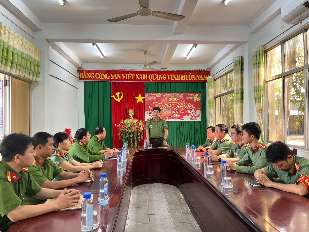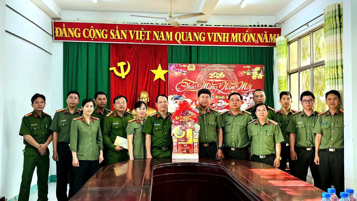Nhân dịp Tết Nguyên đán Bính Ngọ 2026, sáng 29/01, Đoàn công tác do đồng chí Đại tá Nguyễn Đình Thuận Hải - UVBTV Đảng uỷ, Phó Giám đốc Công an tỉnh làm trưởng đoàn đến kiểm tra công tác ứng trực, thăm và chúc Tết, động viên cán bộ, chiến sĩ Công an xã Ninh Phước.