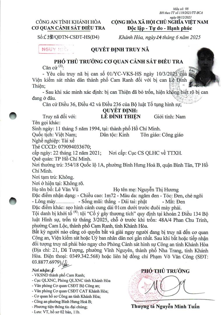 Theo Quyết định truy nã số C390 ngày 24/06/2025, hiện đang truy nã trên phạm vi toàn quốc đối với đối tượng: