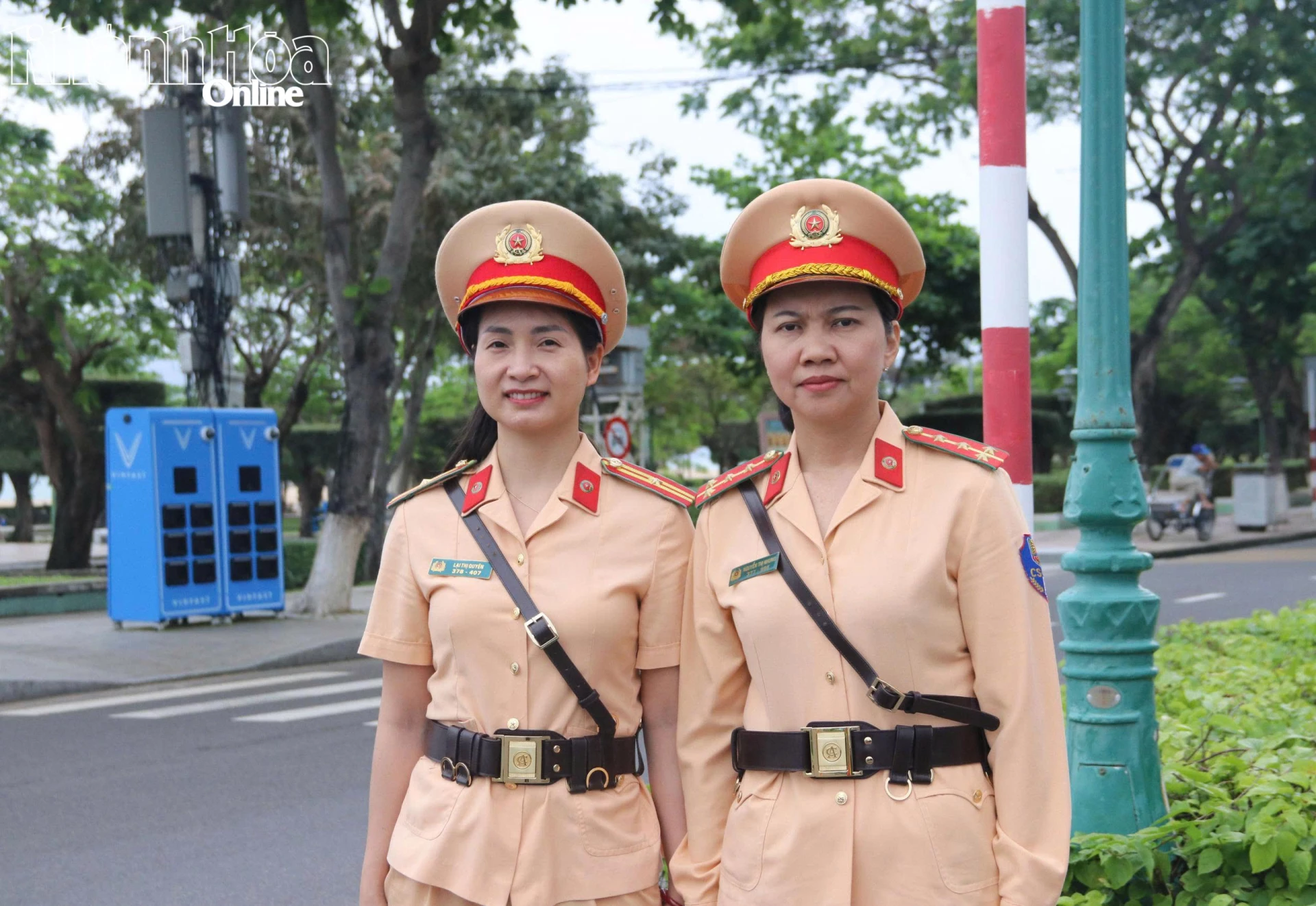Những “bóng hồng” điều tiết giao thông phục vụ ngày bầu cử tại khu vực Nha Trang. Ảnh: CHÂU TƯỜNG