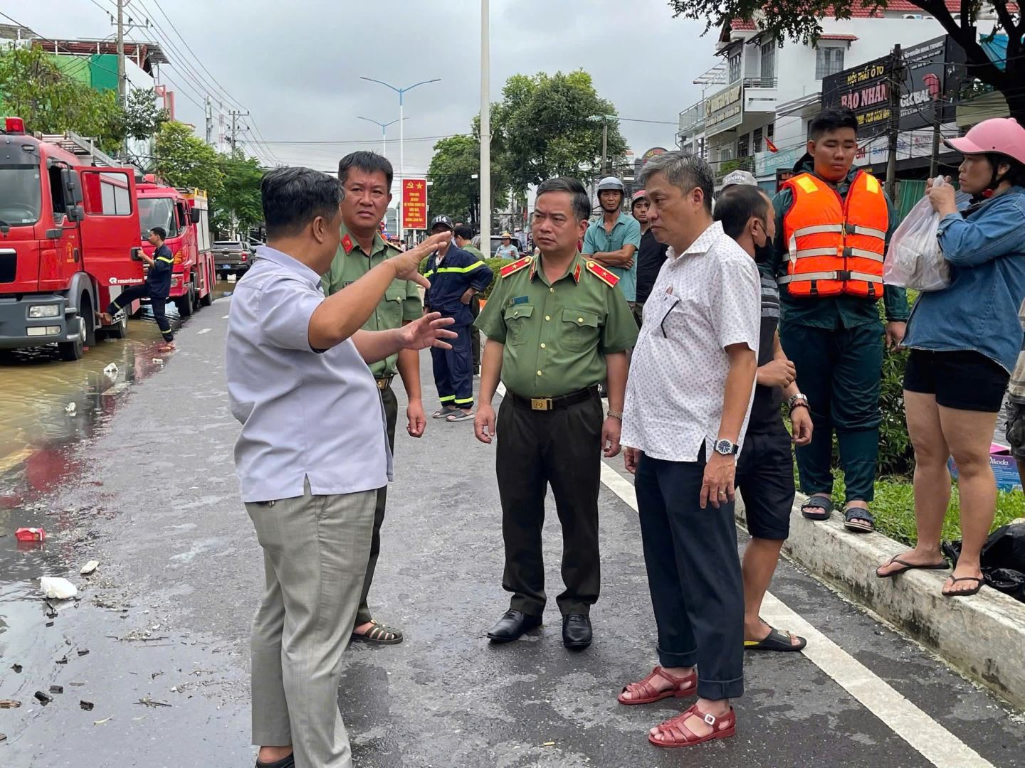 Thiếu tướng Nguyễn Hữu Phước, Giám đốc Công an tỉnh Khánh Hòa trực tiếp có mặt tại hiện trường chỉ huy lực lượng tiếp cận các khu vực ngập sâu bằng thuyền máy, mô-tô nước và phao bè, ưu tiên tiếp cận những hộ dân ở vị trí xa, nước dâng nhanh, tập trung đưa người già, trẻ em ra khỏi vùng nguy hiểm trước.