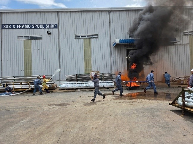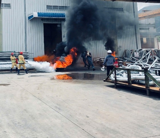 Tình huống giả định được đặt ra vào lúc 10 giờ 00 phút ngày 18/10. Do sự cố hệ thống điện, đám cháy đã bùng phát tại khu vực Xưởng sơn và Xưởng phun bi của nhà máy. Đây là khu vực tập trung nhiều chất dễ cháy như sơn, dung môi, thiết bị máy móc, khiến ngọn lửa bùng phát mạnh, lan nhanh và tỏa ra lượng lớn khói, khí độc.