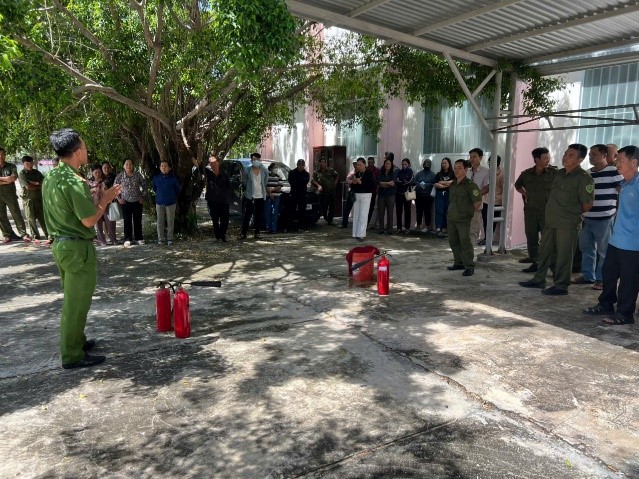 Phần thực hành nhận được sự quan tâm đặc biệt của các đại biểu. Dưới sự hướng dẫn của cán bộ Cảnh sát PCCC&CNCH, các học viên đã được trực tiếp thực hành thao tác sử dụng bình chữa cháy xách tay để dập tắt đám cháy giả định, cũng như được trang bị các kỹ năng thoát nạn an toàn trong môi trường có khói độc.