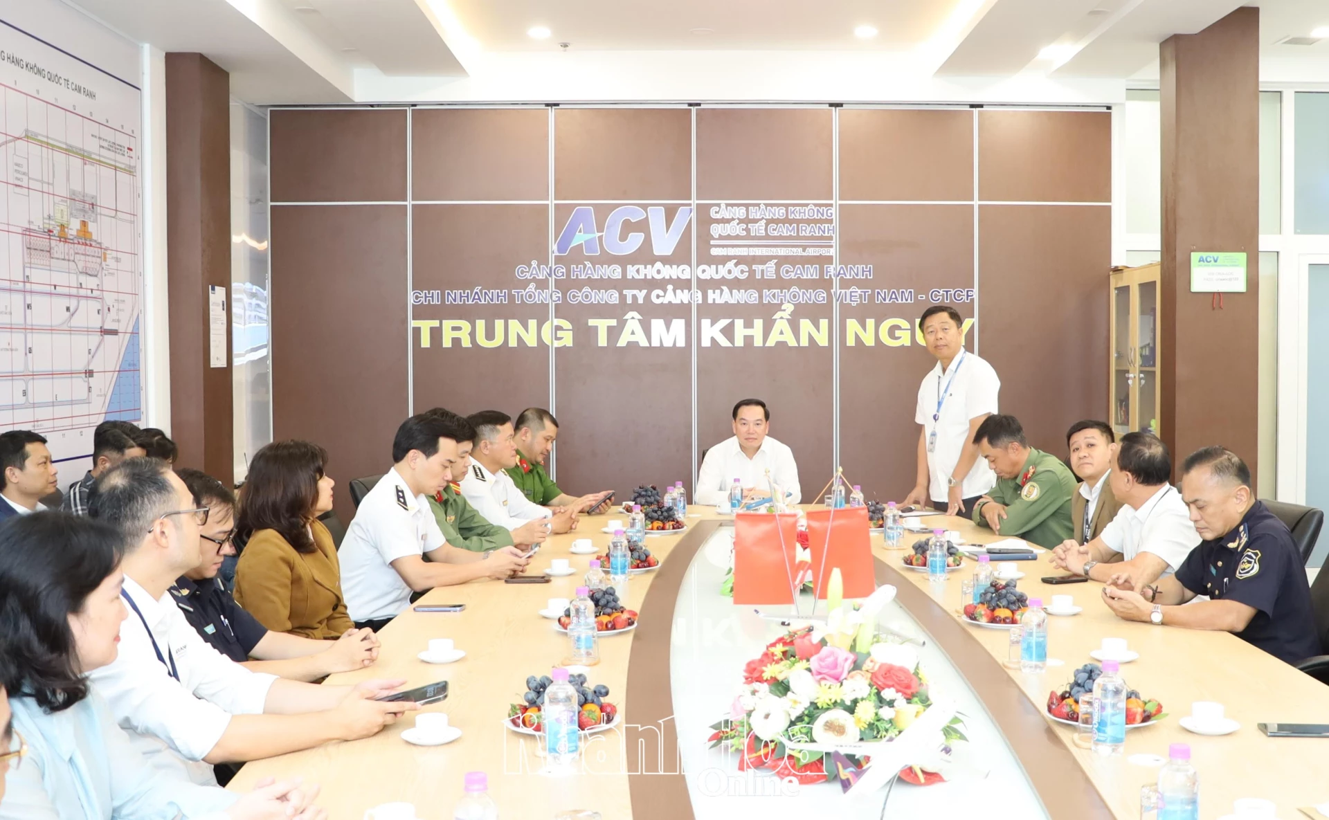 Đồng chí Hồ Xuân Trường đề nghị Cảng vụ Hàng không miền Trung, Hải quan Cửa khẩu Sân bay quốc tế Cam Ranh, Trạm Kiểm dịch y tế quốc tế và Công an Cửa khẩu Cảng Hàng không quốc tế Cam Ranh bảo đảm bố trí đầy đủ lực lượng, phương tiện, phương án xử lý tình huống; tập trung thực hiện tốt nhiệm vụ giám sát an toàn, an ninh hàng không, hoạt động của các hãng hàng không và đơn vị mặt đất; bảo đảm an ninh, tuân thủ pháp luật hải quan, kiểm dịch y tế tại cửa khẩu hàng không quốc tế với tinh thần chủ động, tuyệt đối an toàn, hoạt động thông suốt, phục vụ tốt nhất nhu cầu đi lại của hành khách đến và đi từ Khánh Hòa, nhất là trong dịp Tết Nguyên đán Bính Ngọ 2026. Đồng chí cũng lưu ý các đơn vị quan tâm chăm lo đời sống cán bộ, nhân viên, người lao động, bảo đảm đón Tết đầm ấm, đầy đủ cả về vật chất và tinh thần; sẵn sàng lực lượng, phương tiện khi có tình huống phát sinh.