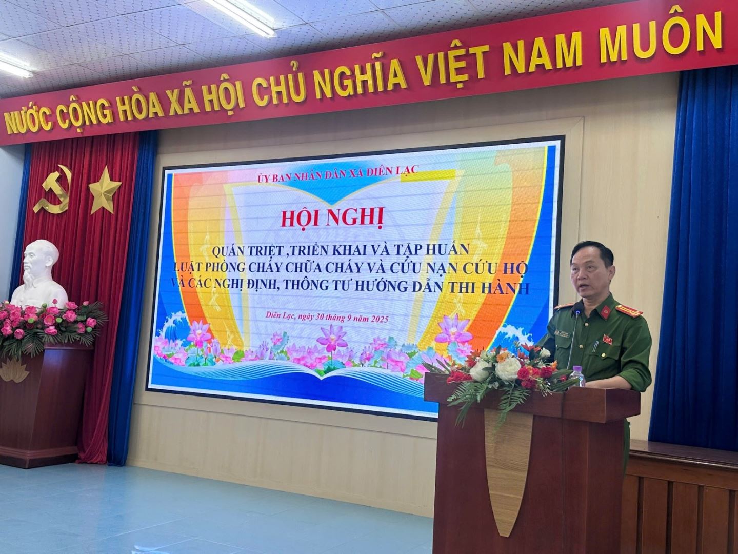 Ngày 30/9/2025, UBND xã Diên Lạc phối hợp với Phòng Cảnh sát Phòng cháy, chữa cháy và cứu nạn, cứu hộ (PCCC&CNCH) – Công an tỉnh Khánh Hòa tổ chức Hội nghị phổ biến, quán triệt, hướng dẫn công tác quản lý nhà nước về PCCC&CNCH năm 2025.