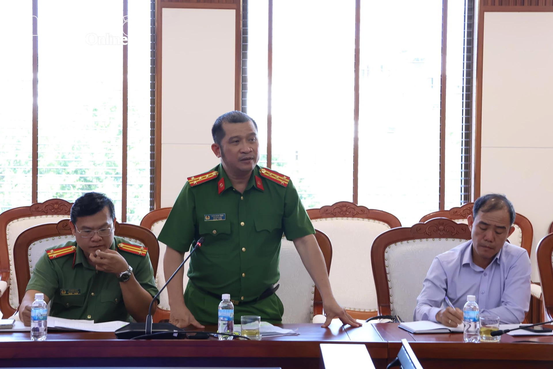 Lãnh đạo Công an tỉnh báo cáo tại cuộc họp.